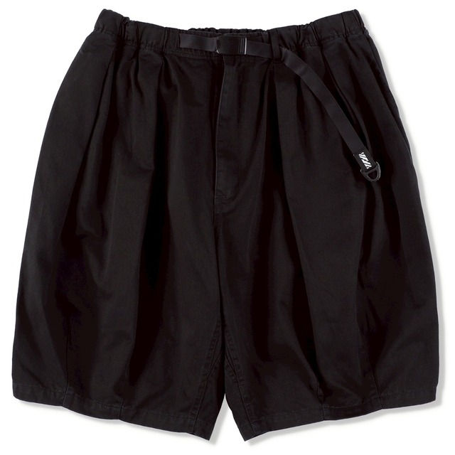 BRAND-UNTRACE ITEM ID-255 QUALITY- POLYESTER 51% (Recycle) POLYESTER 26% RAYON 16% LINEN 7% SIZE ② Waist 80cm / Rise 35cm / Inseam 16cm / Hem width 44cm COLOR-BLACK ワタリに大胆なボリュームを持たせ、股下との絶妙なバランスで魅せる、UNTRACE定番のカフスショーツ。 素材には、リサイクルポリエステルを主素材にリネンを混紡した平織り生地を採用。シワになりにくく、イージーケア性にも優れており、真夏のワードローブに欠かせない一本です。 バスケットショーツから着想を得たボリュームシルエットに、スラックスを思わせる裾の仕立て、そしてフロントに施した深めのタックが特徴。ラフな印象の中にクラシカルなムードを共存させています。 さらに、バックポケットにもタックを加えることで、立体的な動きとシルエットの奥行きを演出。軽装でもしっかりと存在感を放つショーツです。