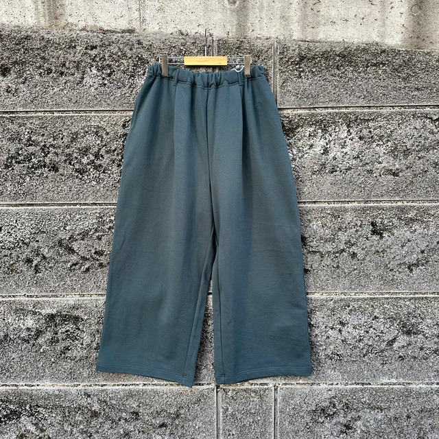 BRAND-Dulcamara ITEM ID-D126-P859 QUALITY-COTTON 100% SIZE ① ウエスト 76cm〜(ゴムと紐仕様) 股上 40cm 股下 65cm COLOR-GREEN ボリューム感のあるワイドシルエットのスウェットパンツ。やわらかく着心地ともに、伸縮性、吸汗性も持ち合わせています。ウエスト内側に紐を通しているので、フィット感のある着用感とともに幅広い体系をカバーしてくれます。ベルトループも備えています。より大人な印象で、着用も可能です。裾元にはアイコン的ディテール「小さなポケット」の装飾も加えています。