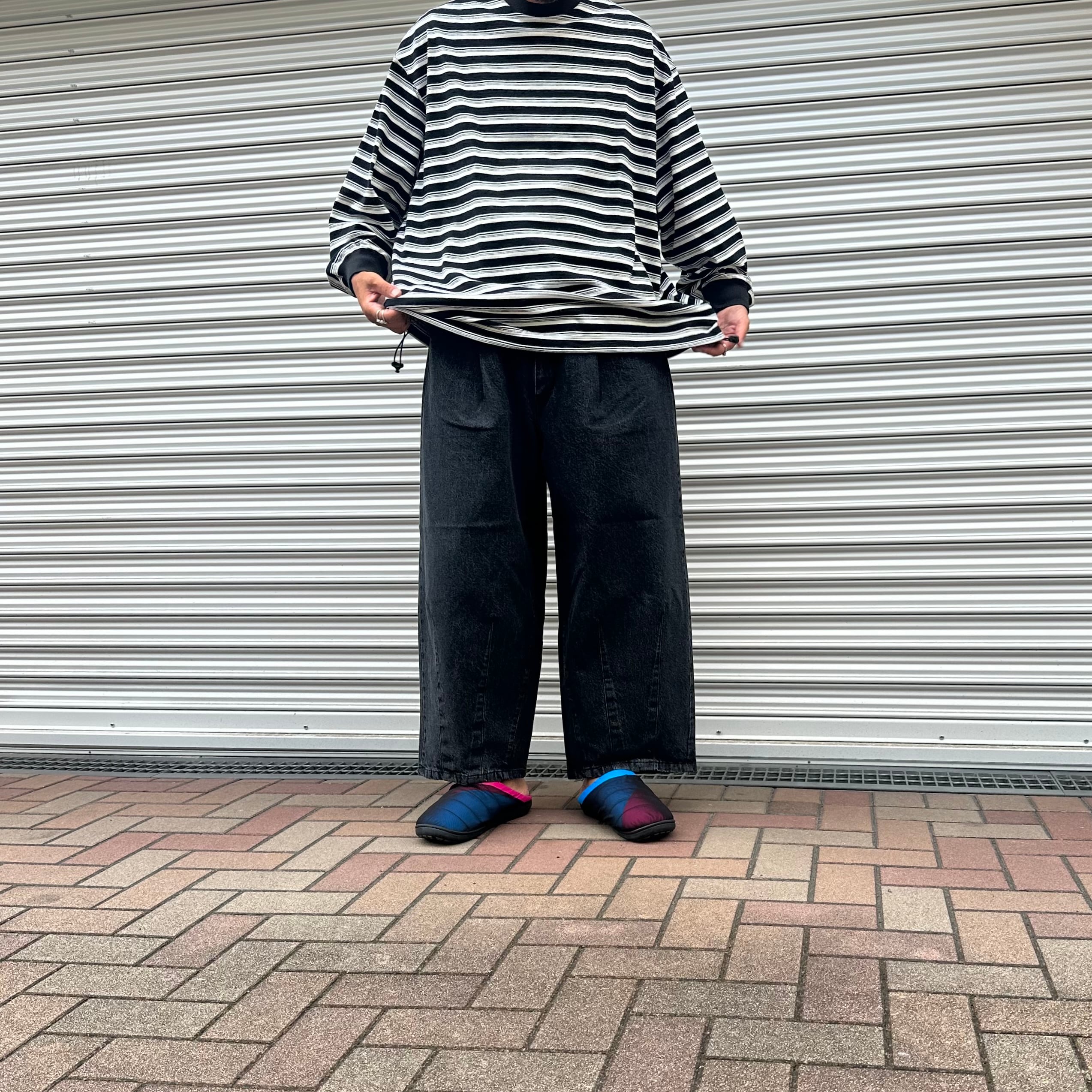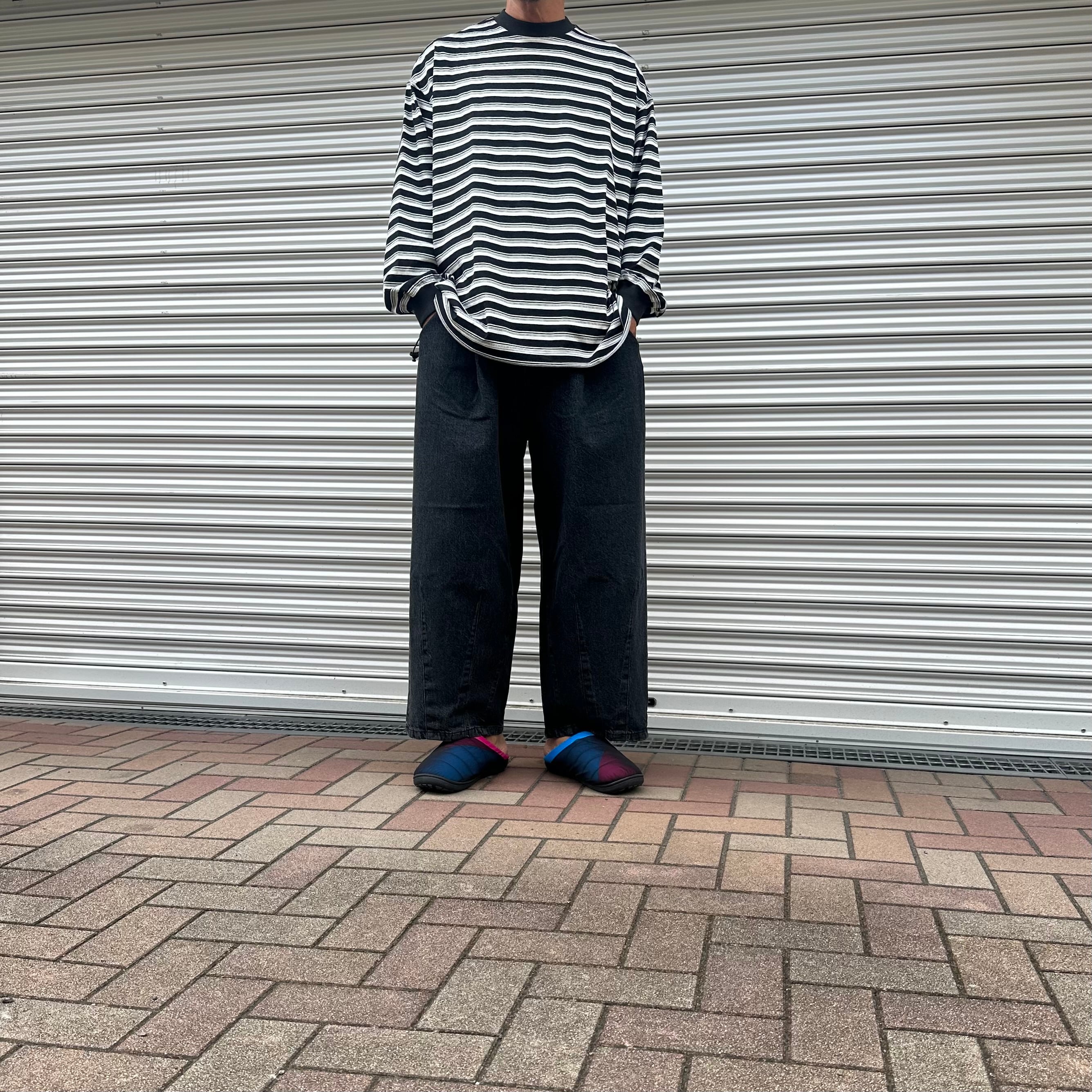 is-nessのバルーンストライプロングスリーブTシャツ。