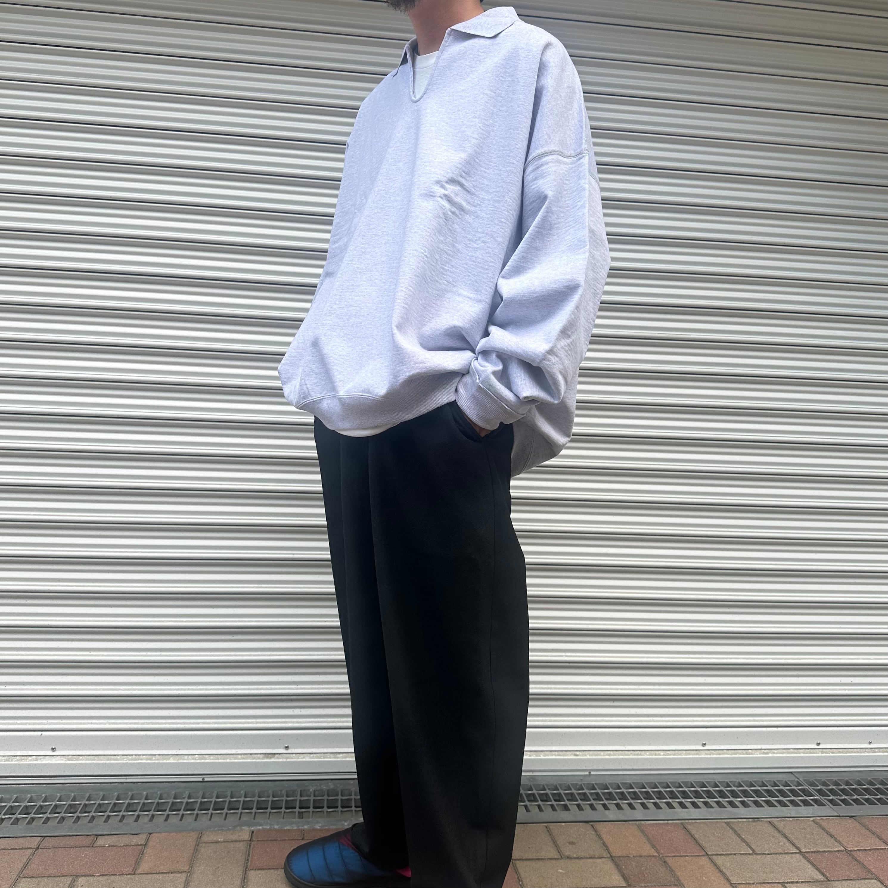 控えめなスキッパーデザインとポロ襟が特徴。自然に肩が落ちるシルエットかつ、360度どこから見ても美しいフォルムが融合した独創的な一着。