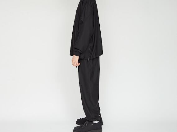 _154のテーパードパンツと同素材でセットアップで着用可能です。