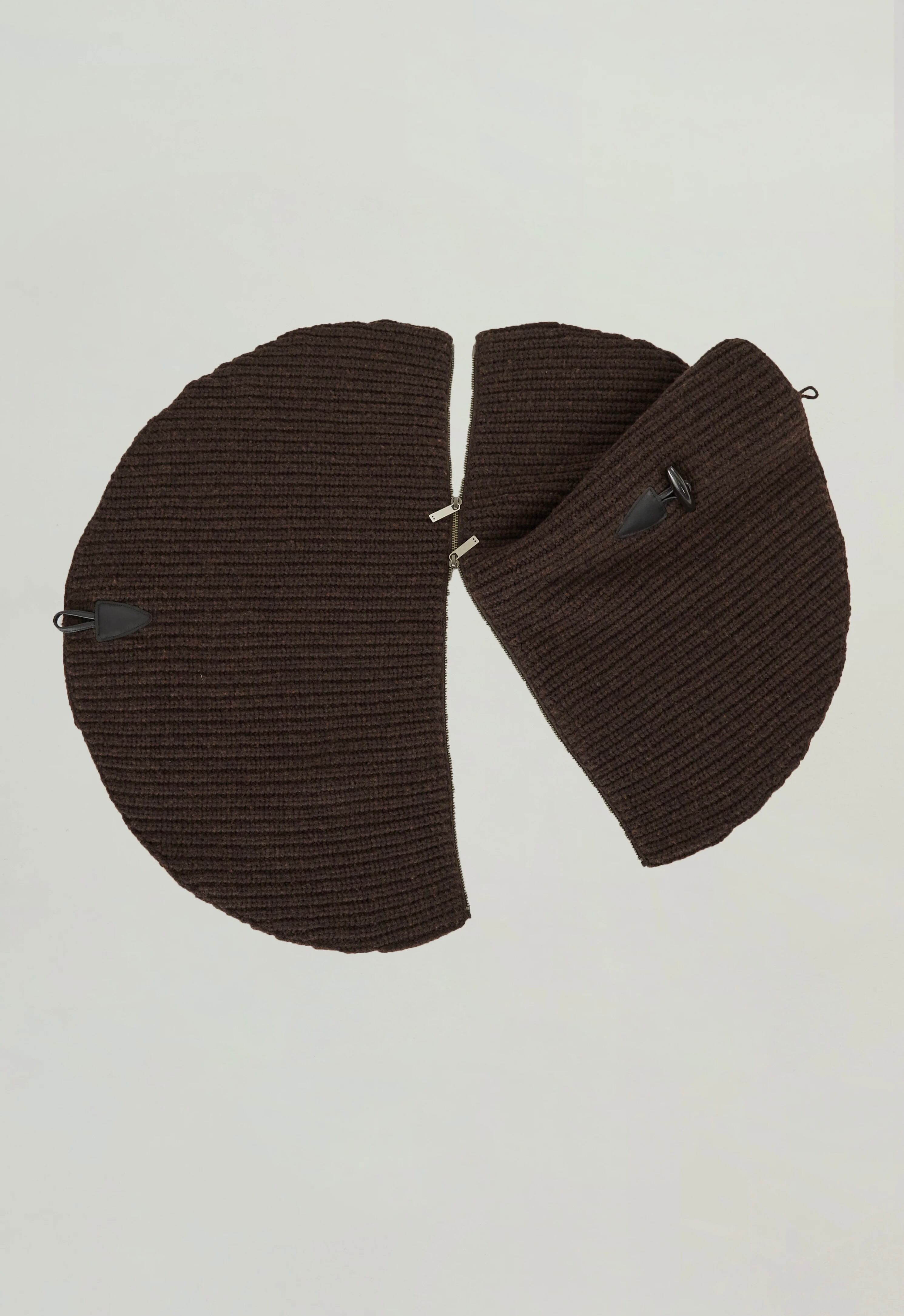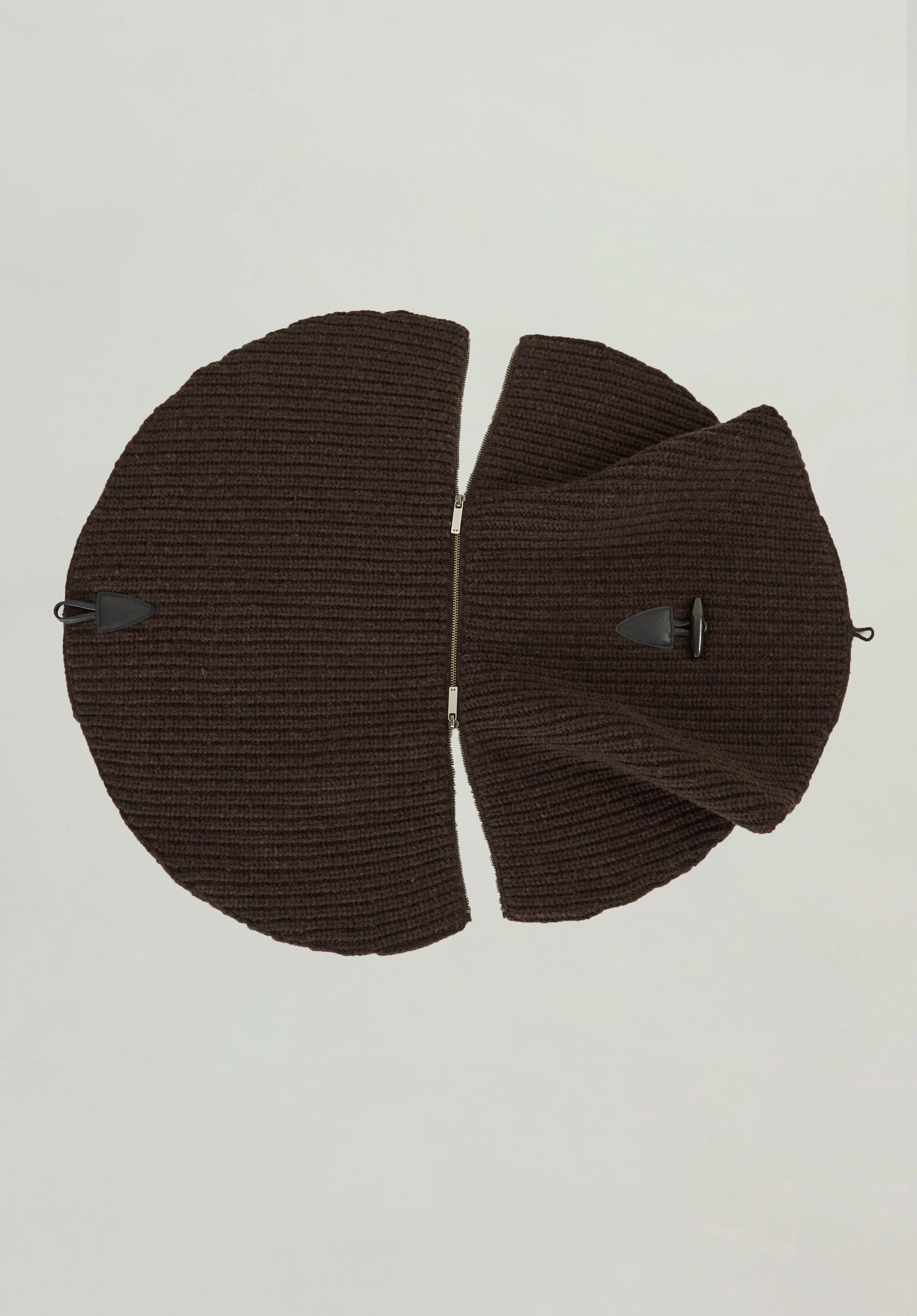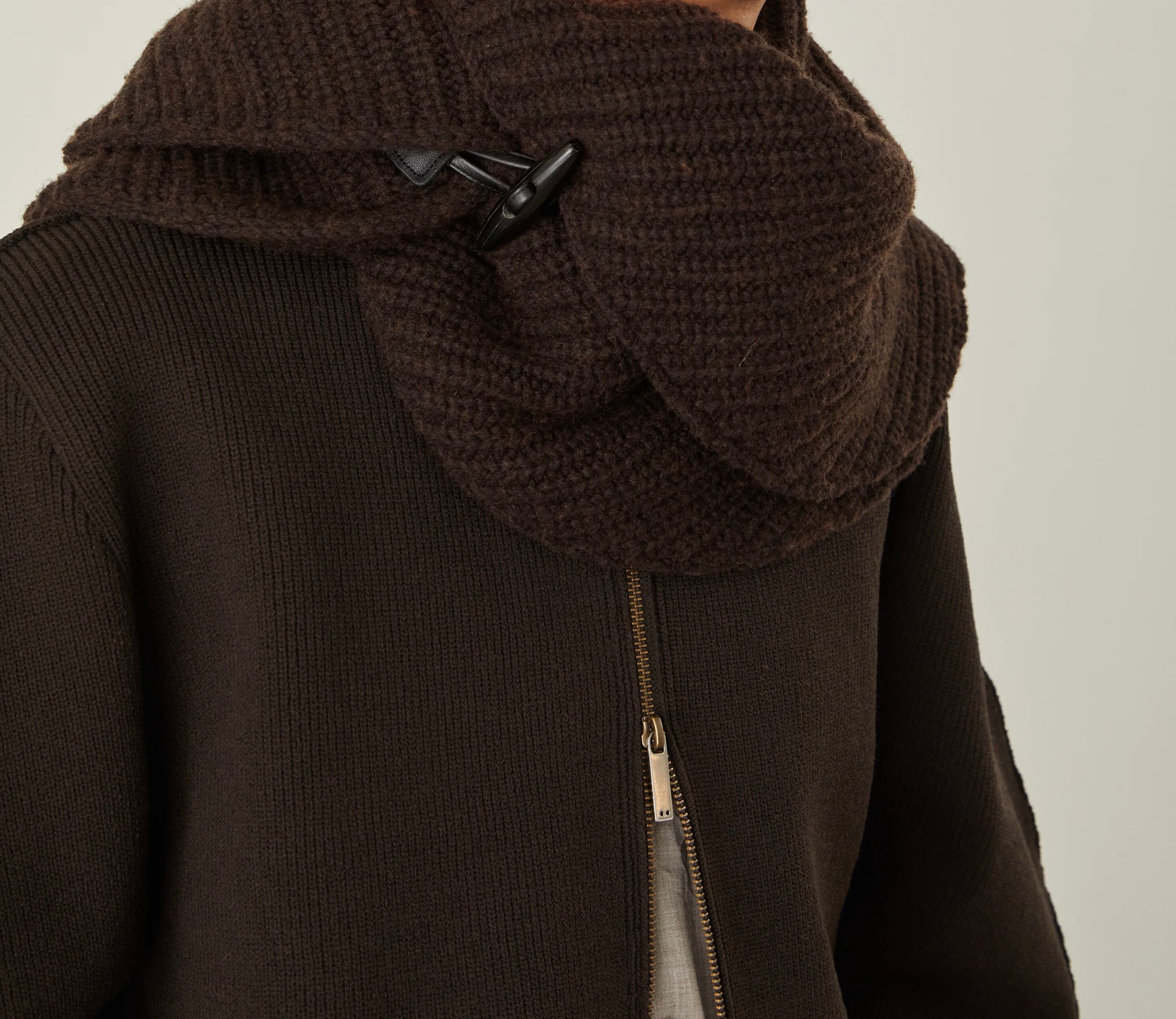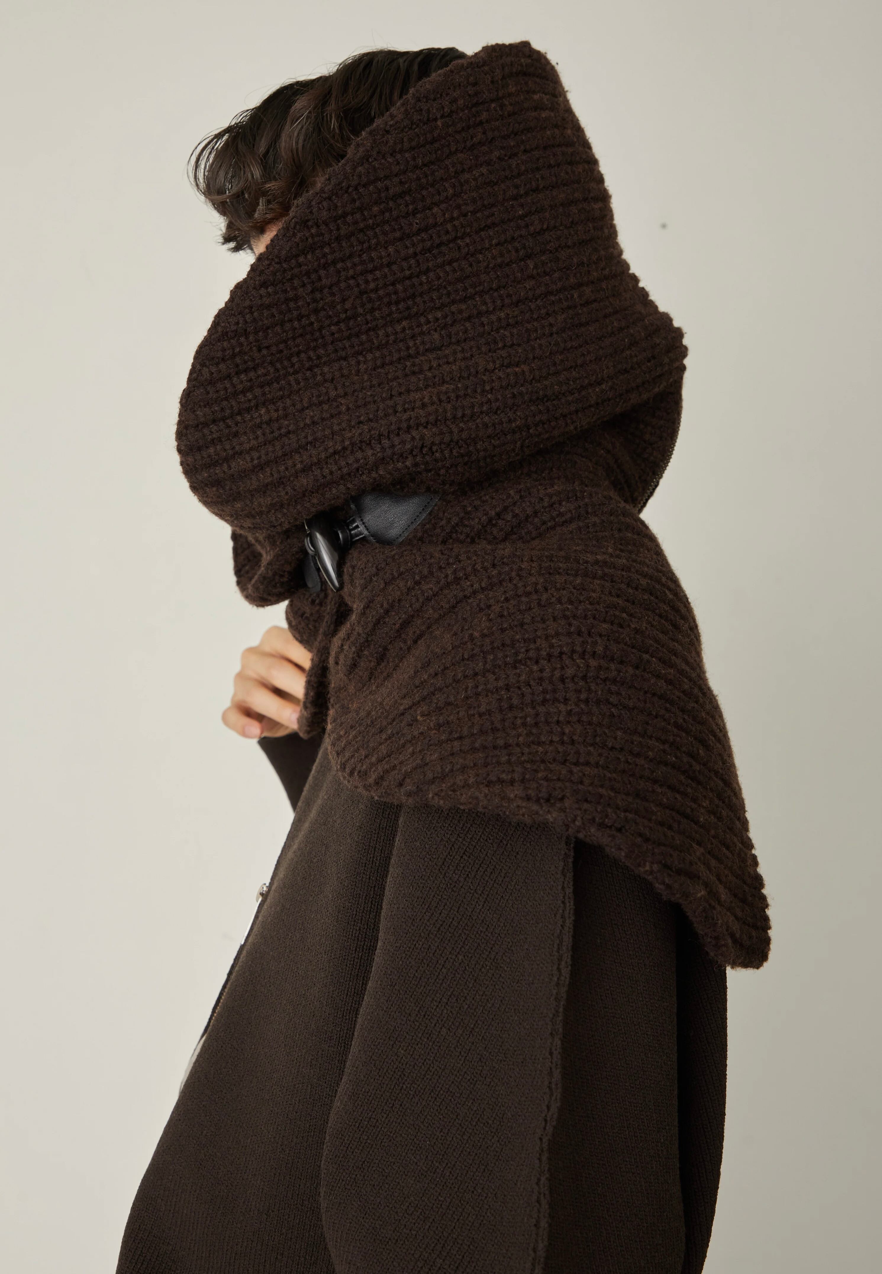 HORNトグルボタンでの着脱が可能な⽅畦編みニットスヌード。
