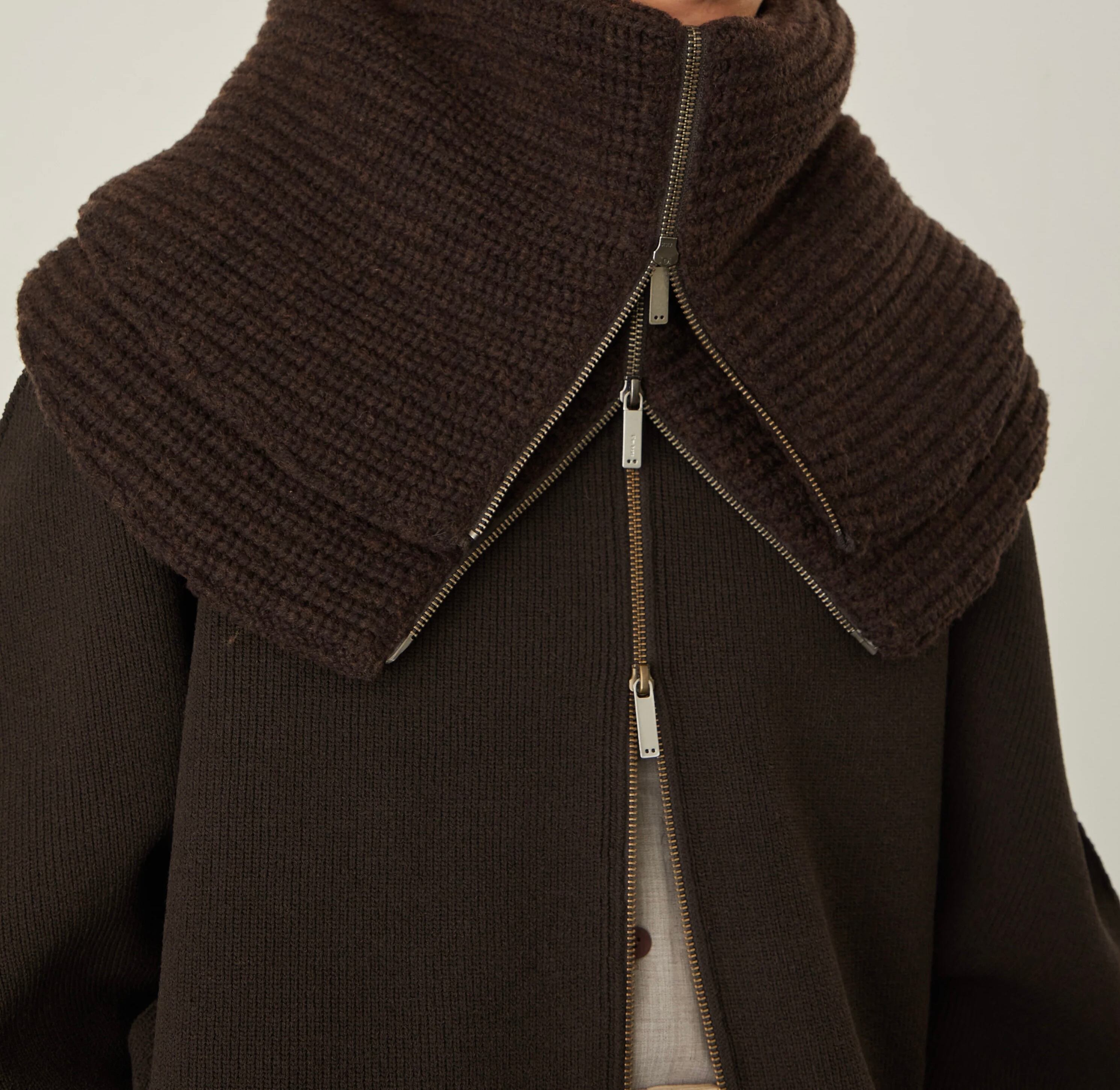 サークルの中⼼には、上下で開閉、調整可能なダブルファスナーが⾛っています。