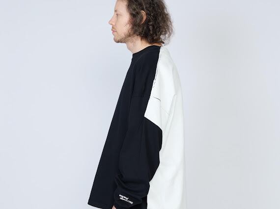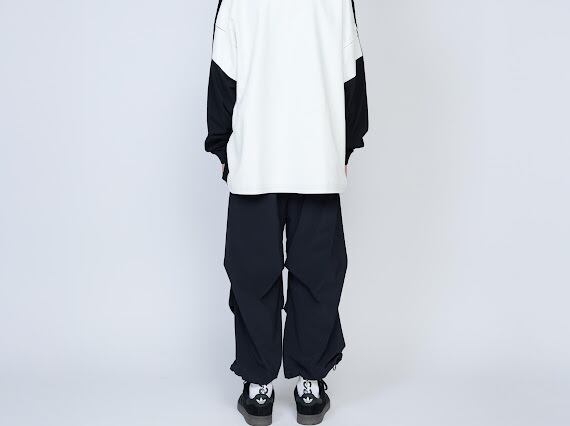背面に大胆にベタ塗りのプリントを施し、腰位置には透明なゲルプリントでUNTRACEのロゴを配しています。