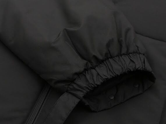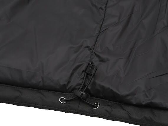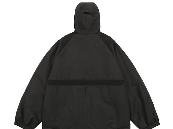 フード・裾はストリングで調整可能。袖はバンディング+スナップ仕様。