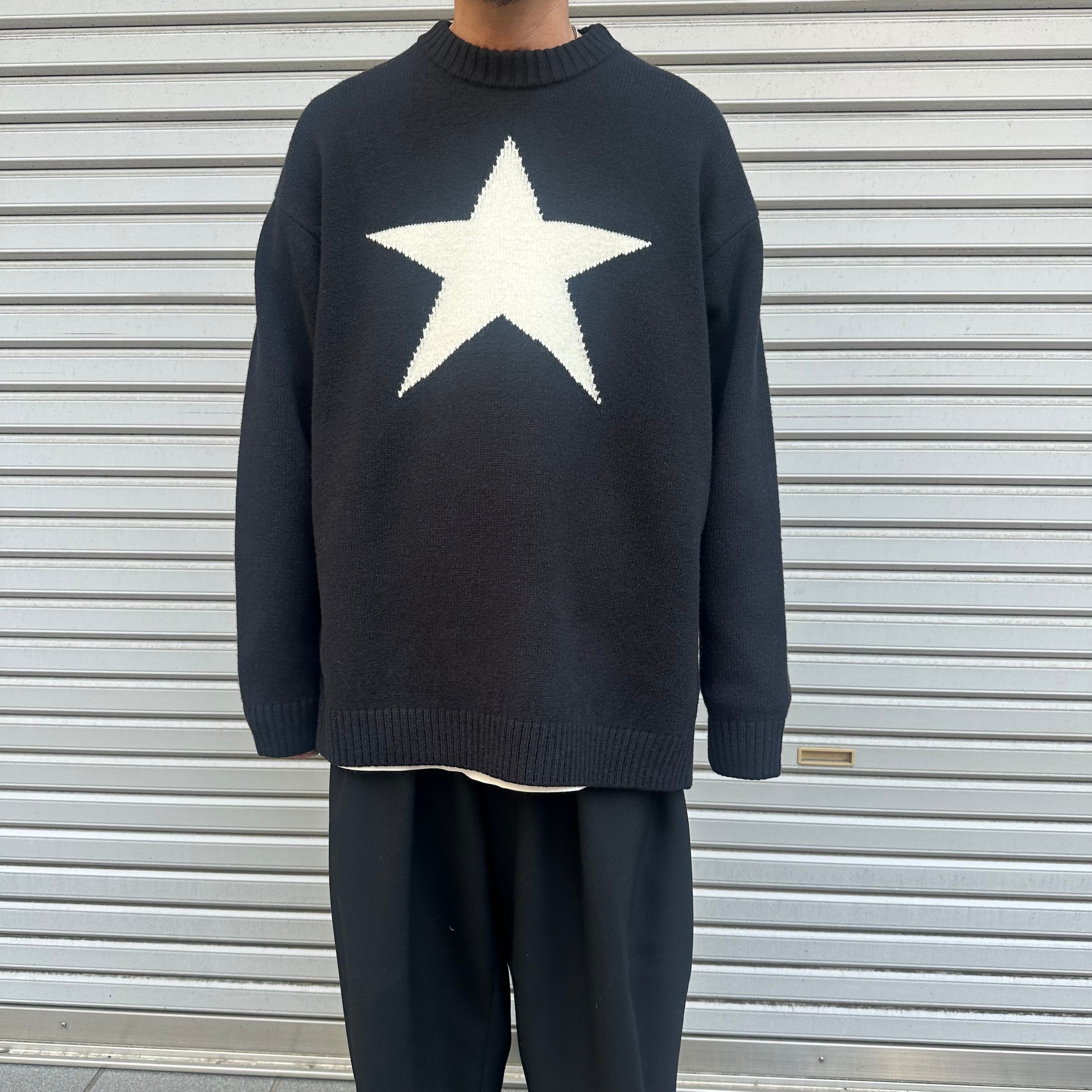 胸に大きな星柄をあしらったニットクルー。暖かく、ふんわりとしたソフトな肌触りが特徴。両サイドにベンチレーションを備えた機能的なニット。お好みのスリットやベンチレーションでカスタマイズ可能。
