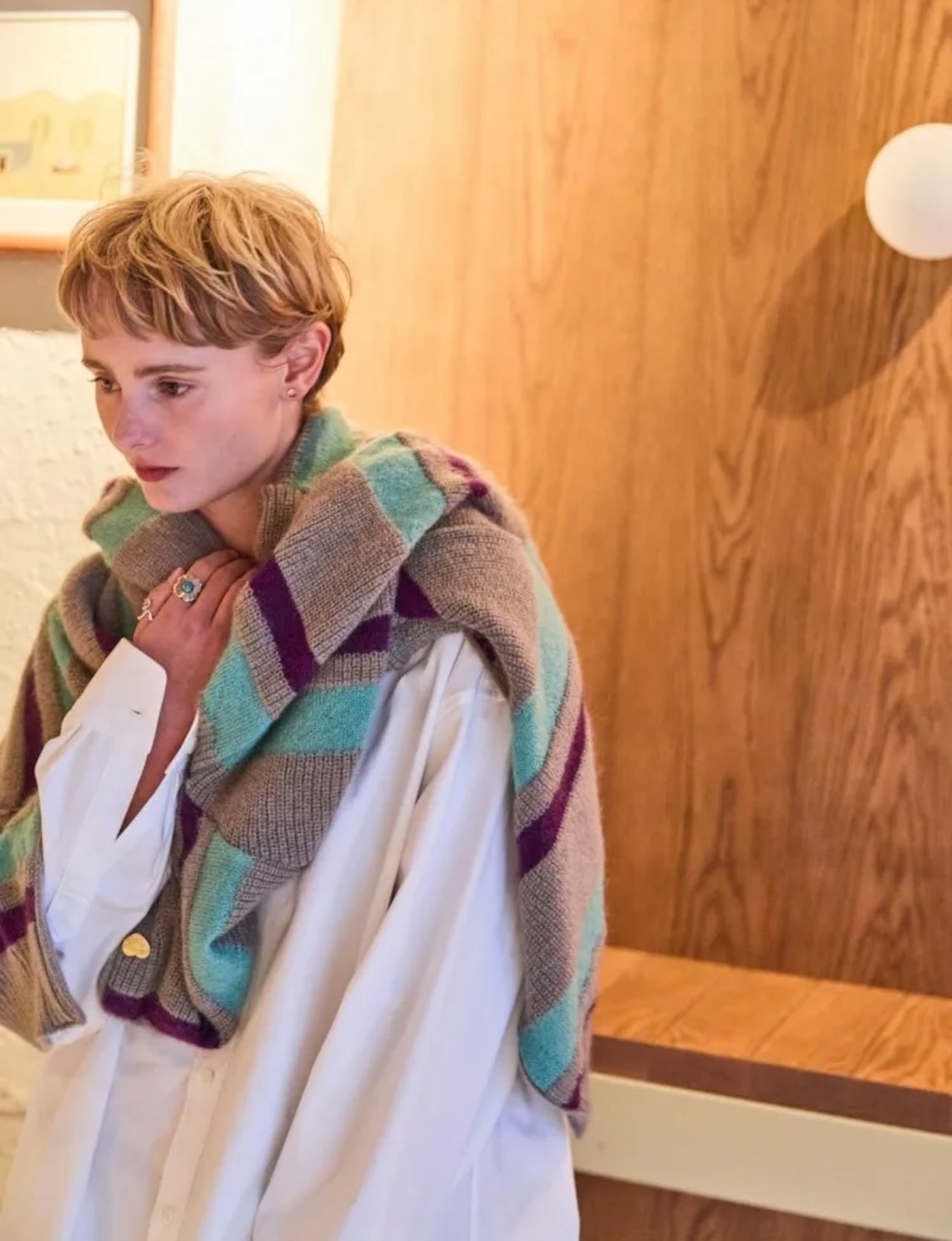 キッドモヘアを贅沢に55%使用し、ふんわりとした軽さと温もりを兼ね備えた一枚。