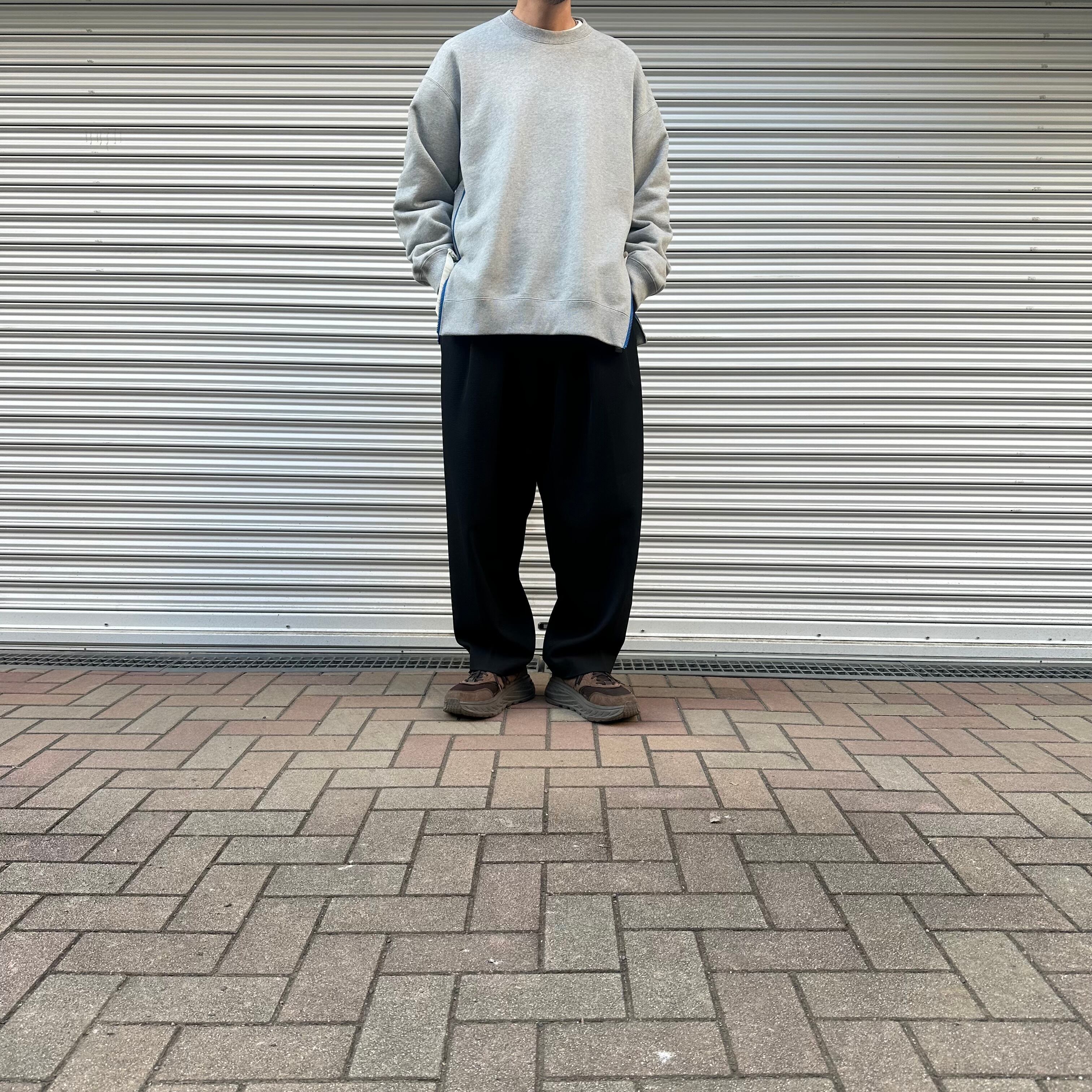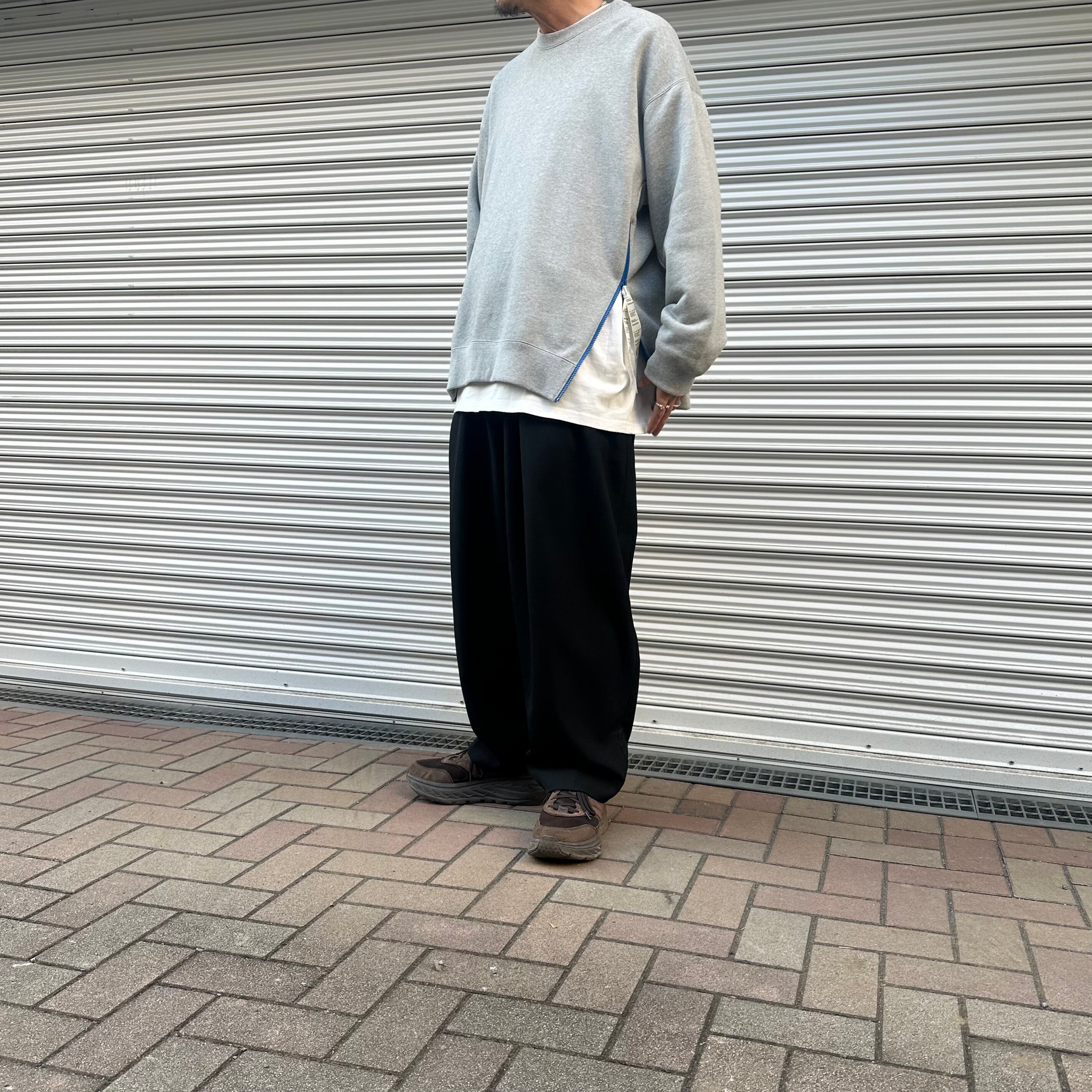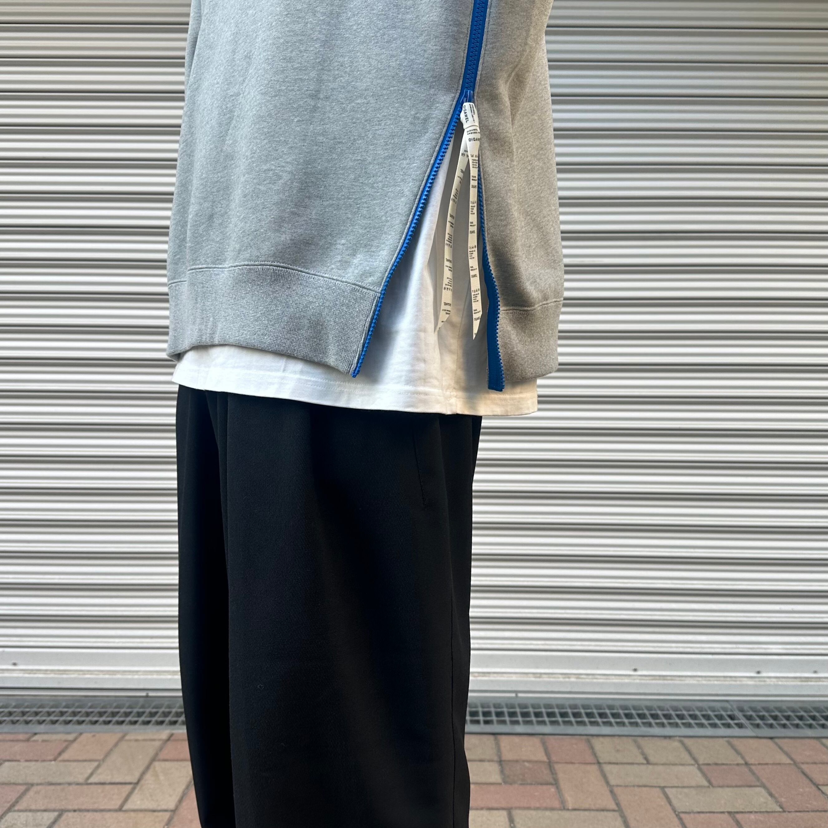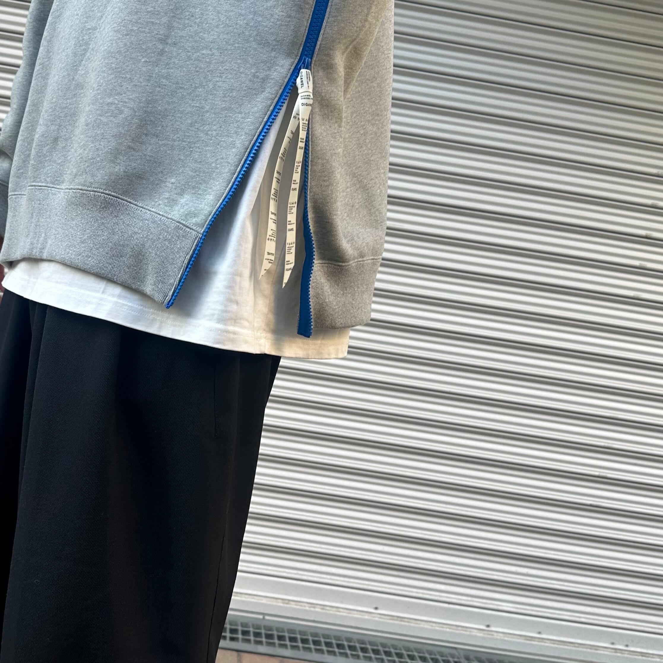 サイドジップ付きのスウェット。裏糸に10番を双糸撚りした糸を配し、立体感のあるループが膨らみを引き出したヘビーウェイトな裏毛を使用。