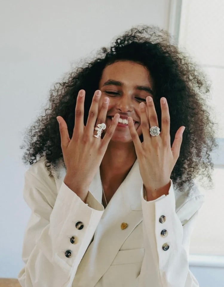 シルバーと石のみで形成されたシンプルさが、スタイルを選ばずコーディネートしていただける作品です。