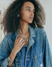 シルバーと石のみで形成されたシンプルさが、スタイルを選ばずコーディネートしていただける作品です。