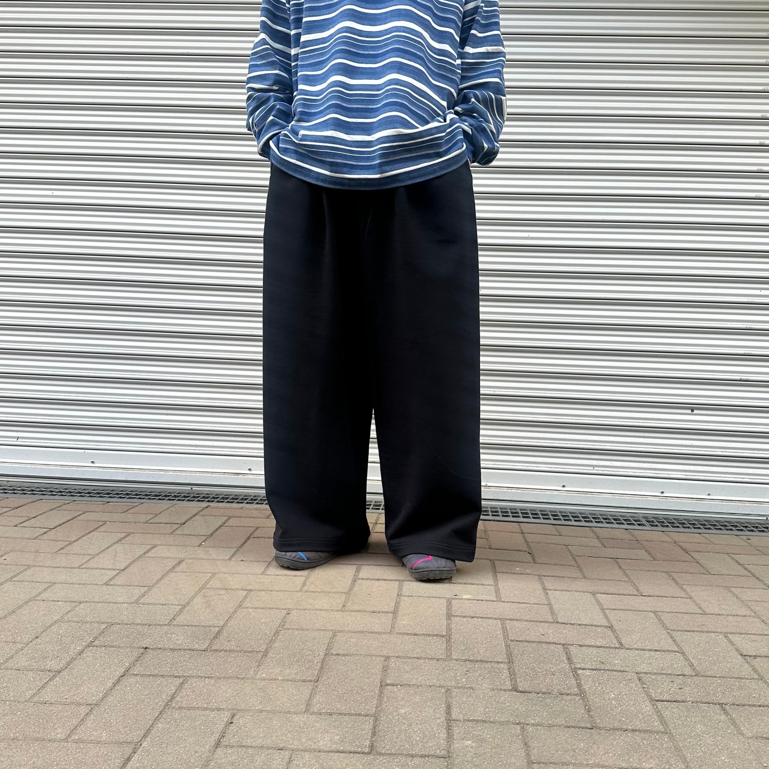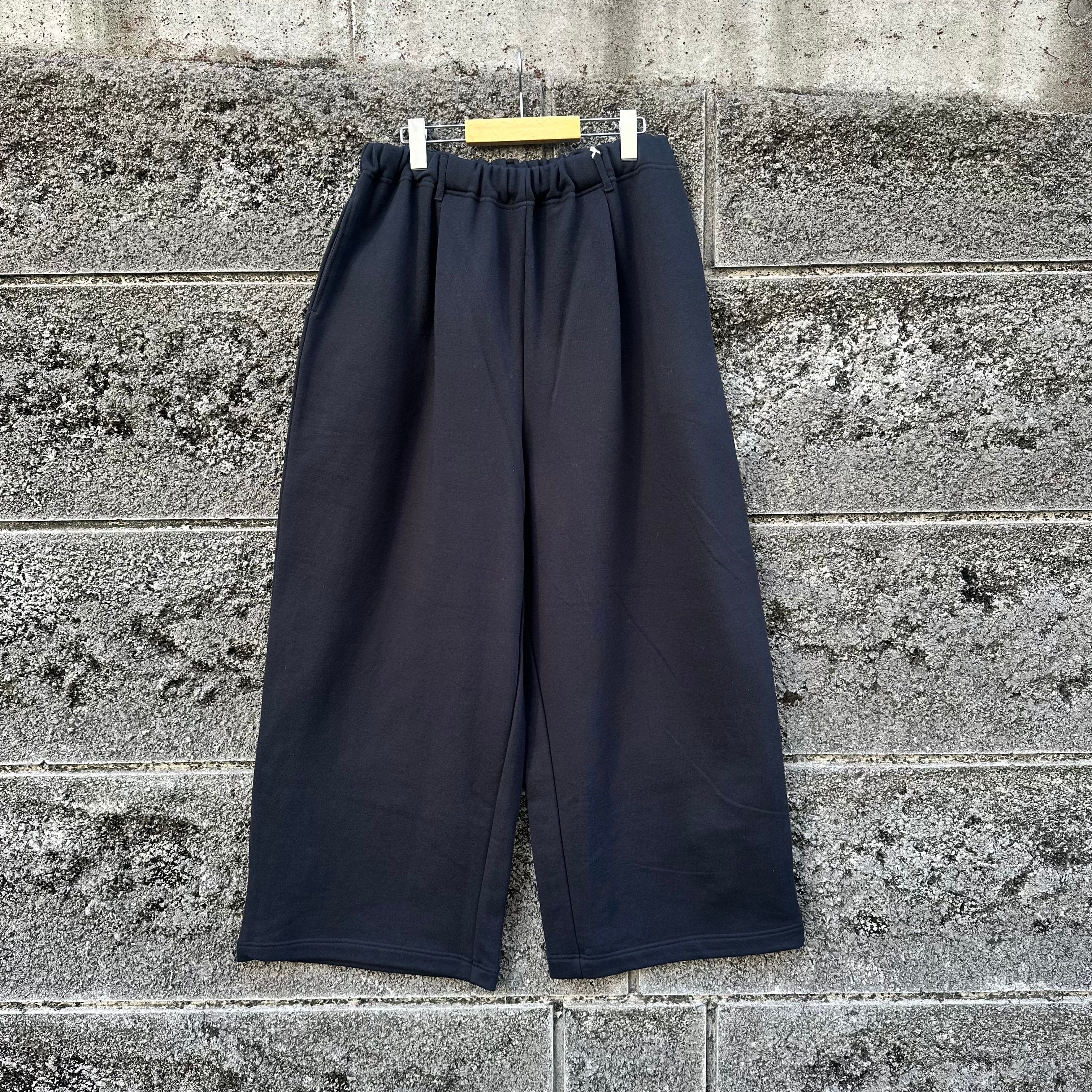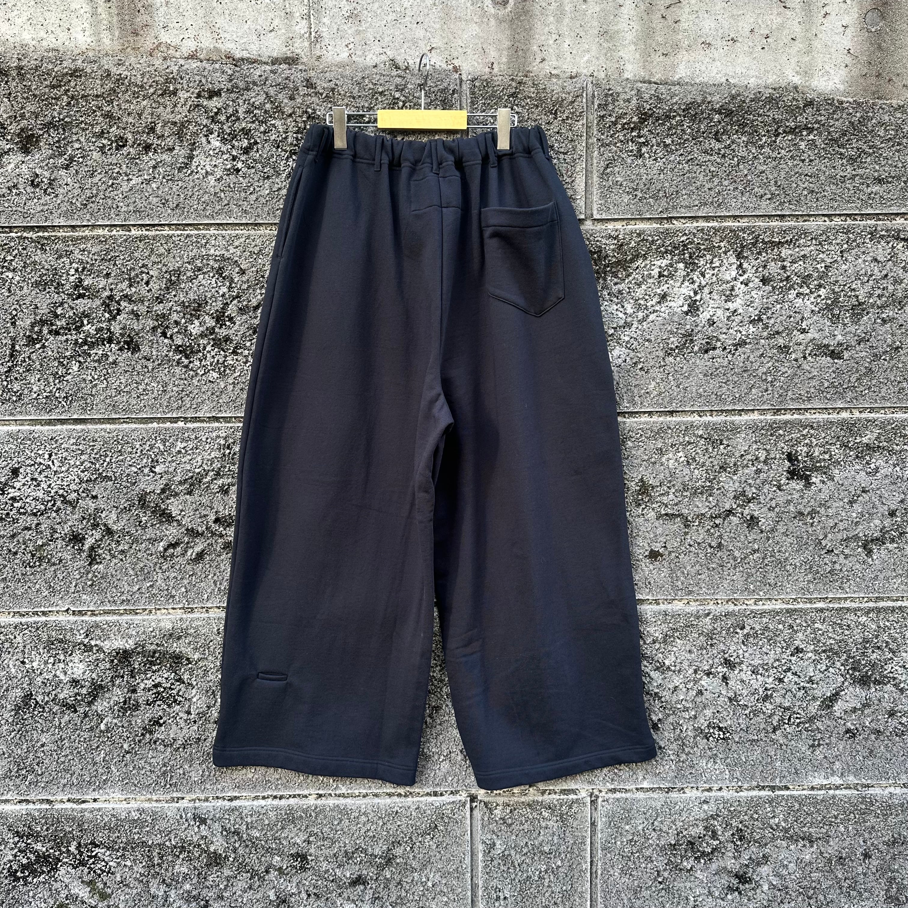 ボリューム感のあるワイドシルエットのスウェットパンツ。やわらかく着心地ともに、伸縮性、吸汗性も持ち合わせています。ウエスト内側に紐を通しているので、フィット感のある着用感とともに幅広い体系をカバーしてくれます。ベルトループも備えています。より大人な印象で、着用も可能です。裾元にはアイコン的ディテール「小さなポケット」の装飾も加えています。