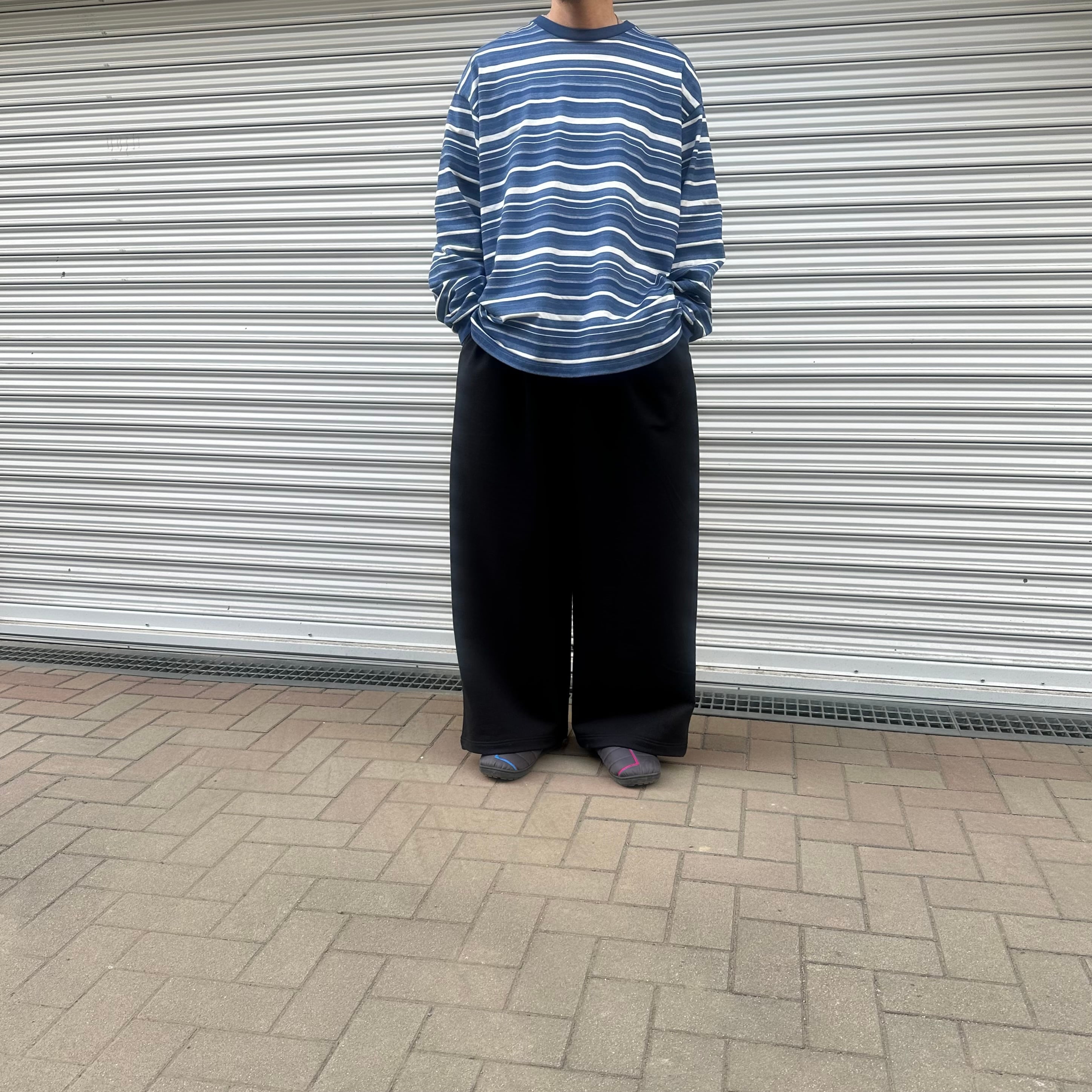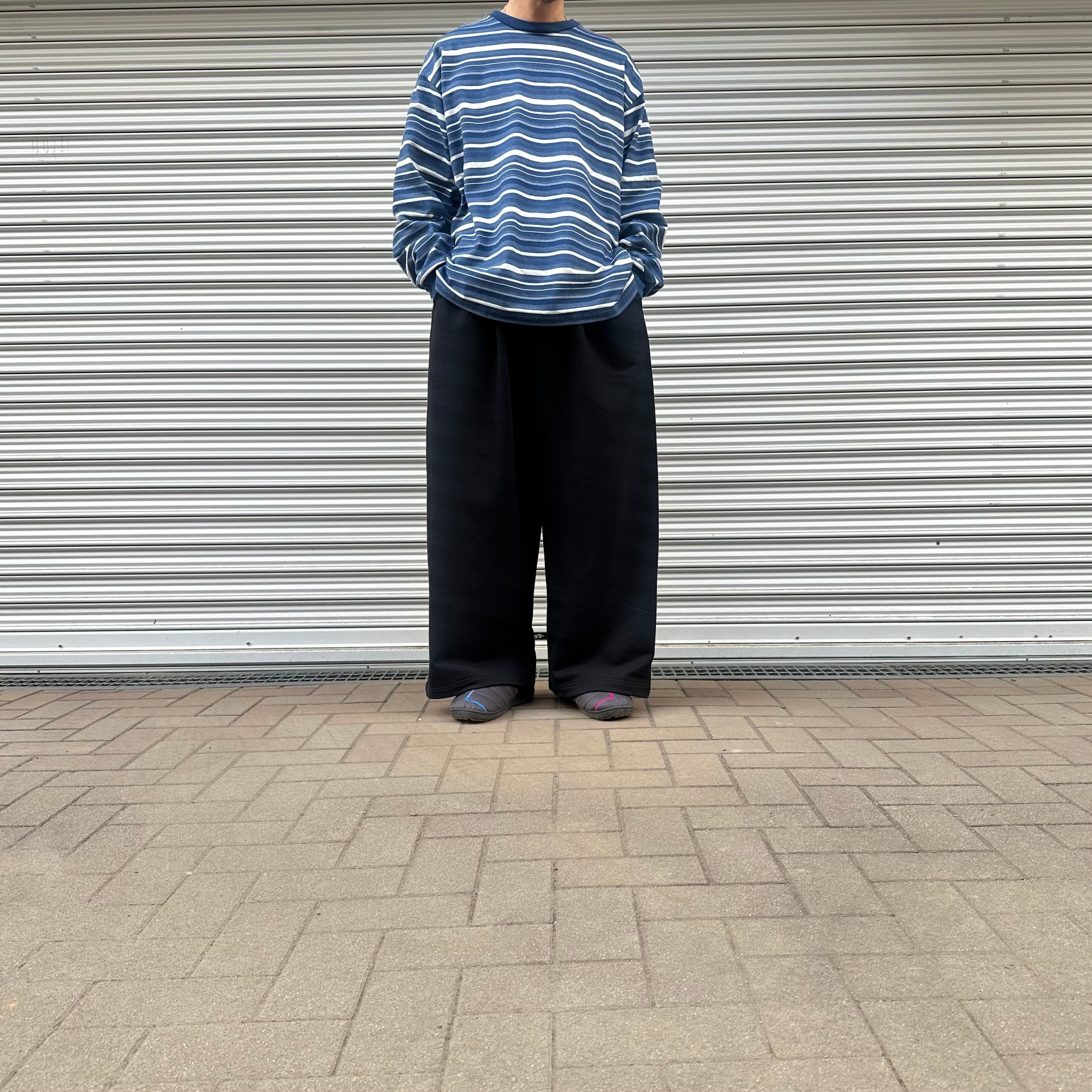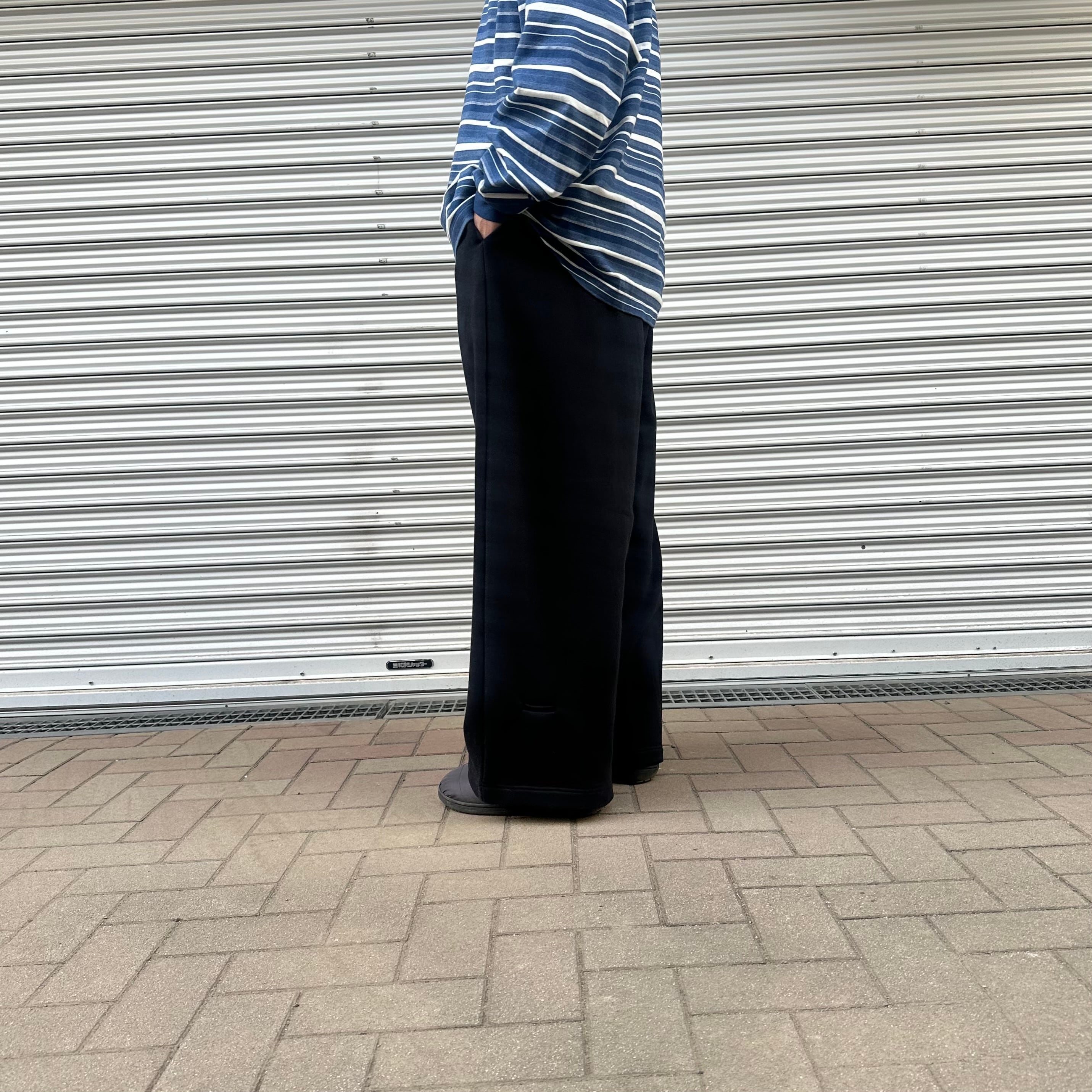 ボリューム感のあるワイドシルエットのスウェットパンツ。やわらかく着心地ともに、伸縮性、吸汗性も持ち合わせています。ウエスト内側に紐を通しているので、フィット感のある着用感とともに幅広い体系をカバーしてくれます。ベルトループも備えています。より大人な印象で、着用も可能です。裾元にはアイコン的ディテール「小さなポケット」の装飾も加えています。