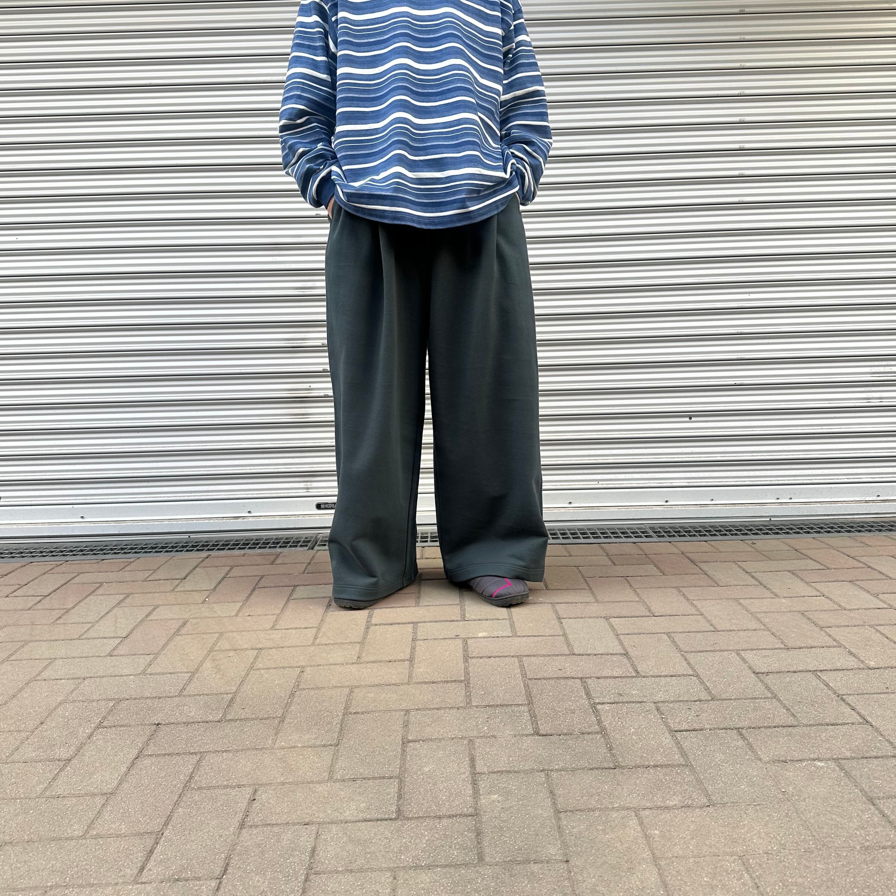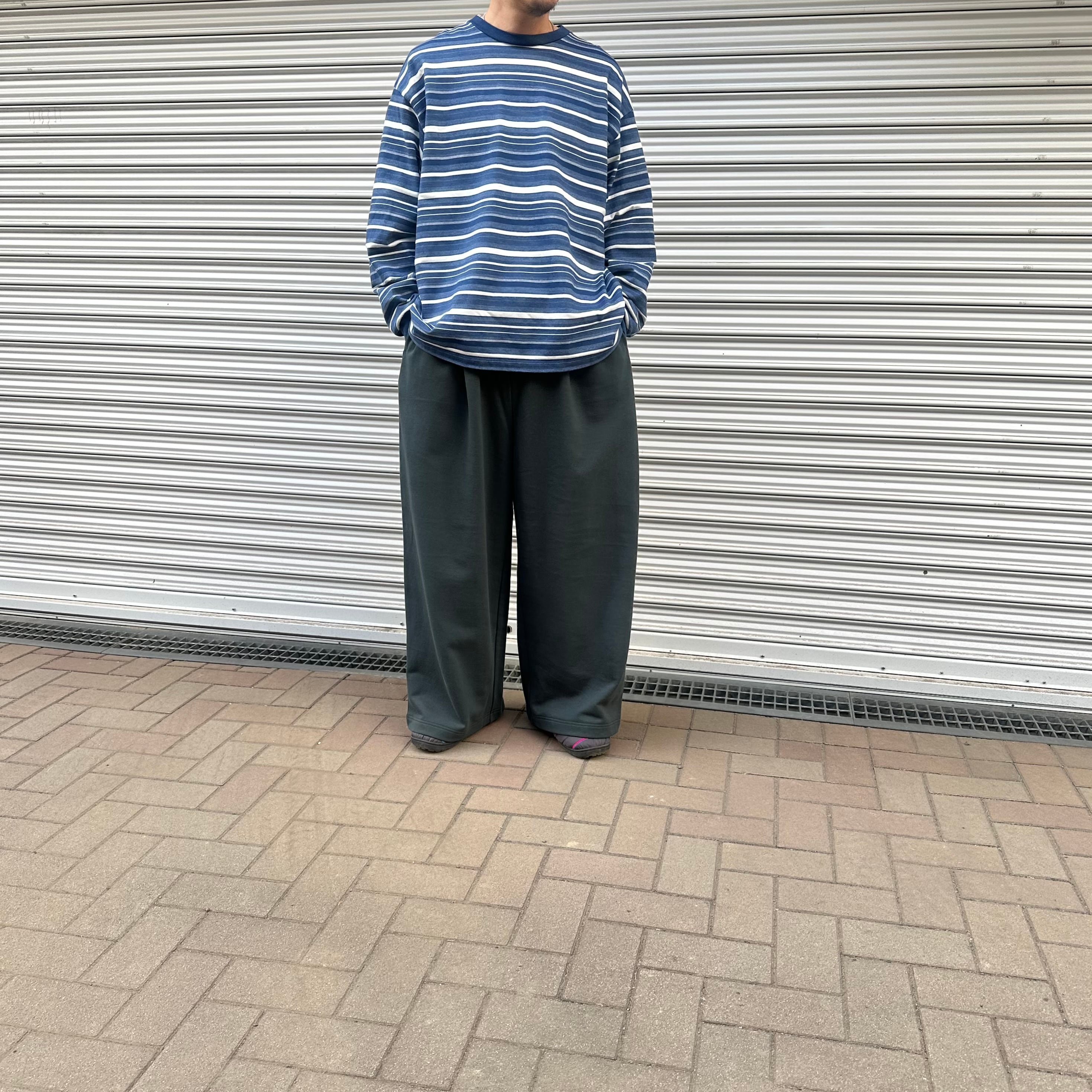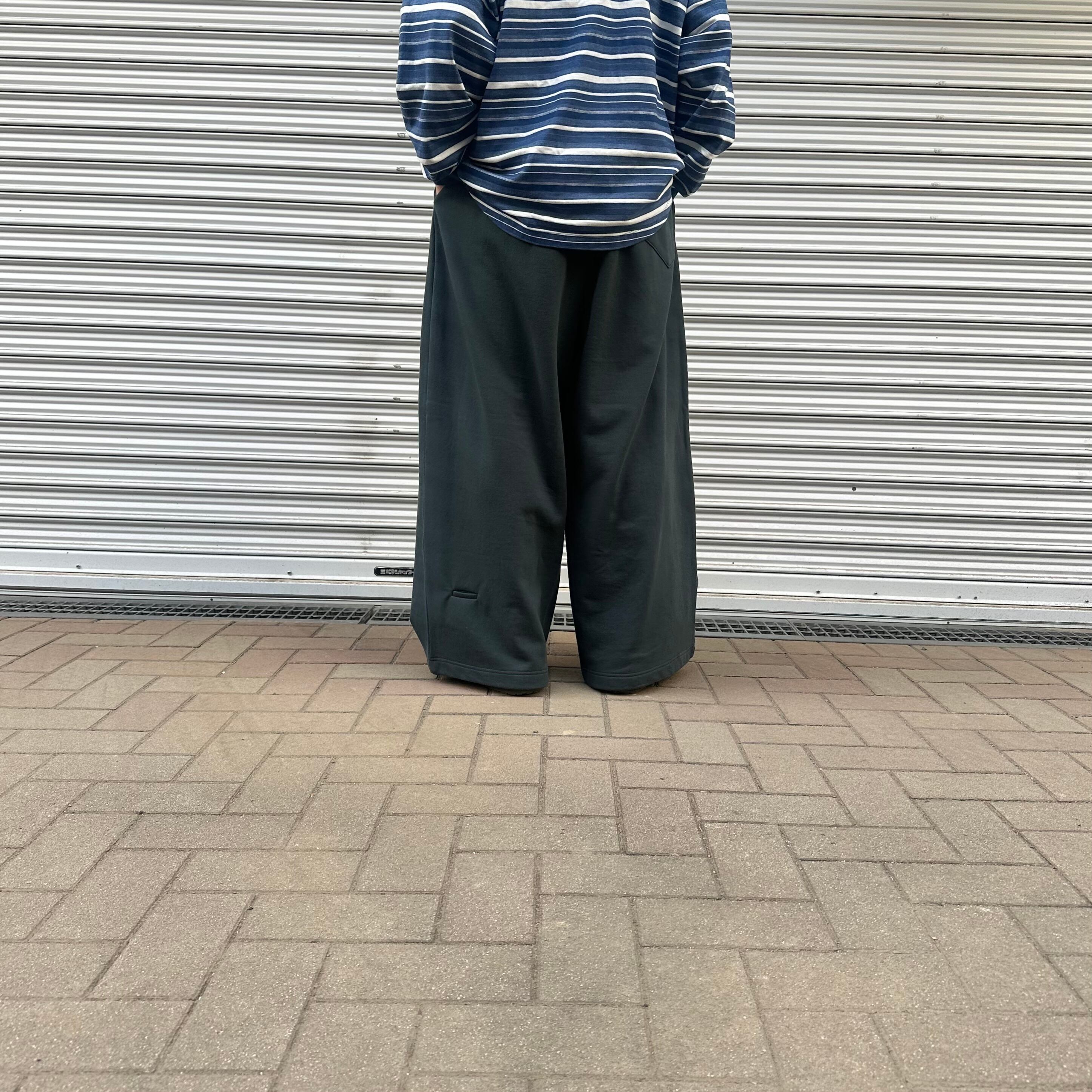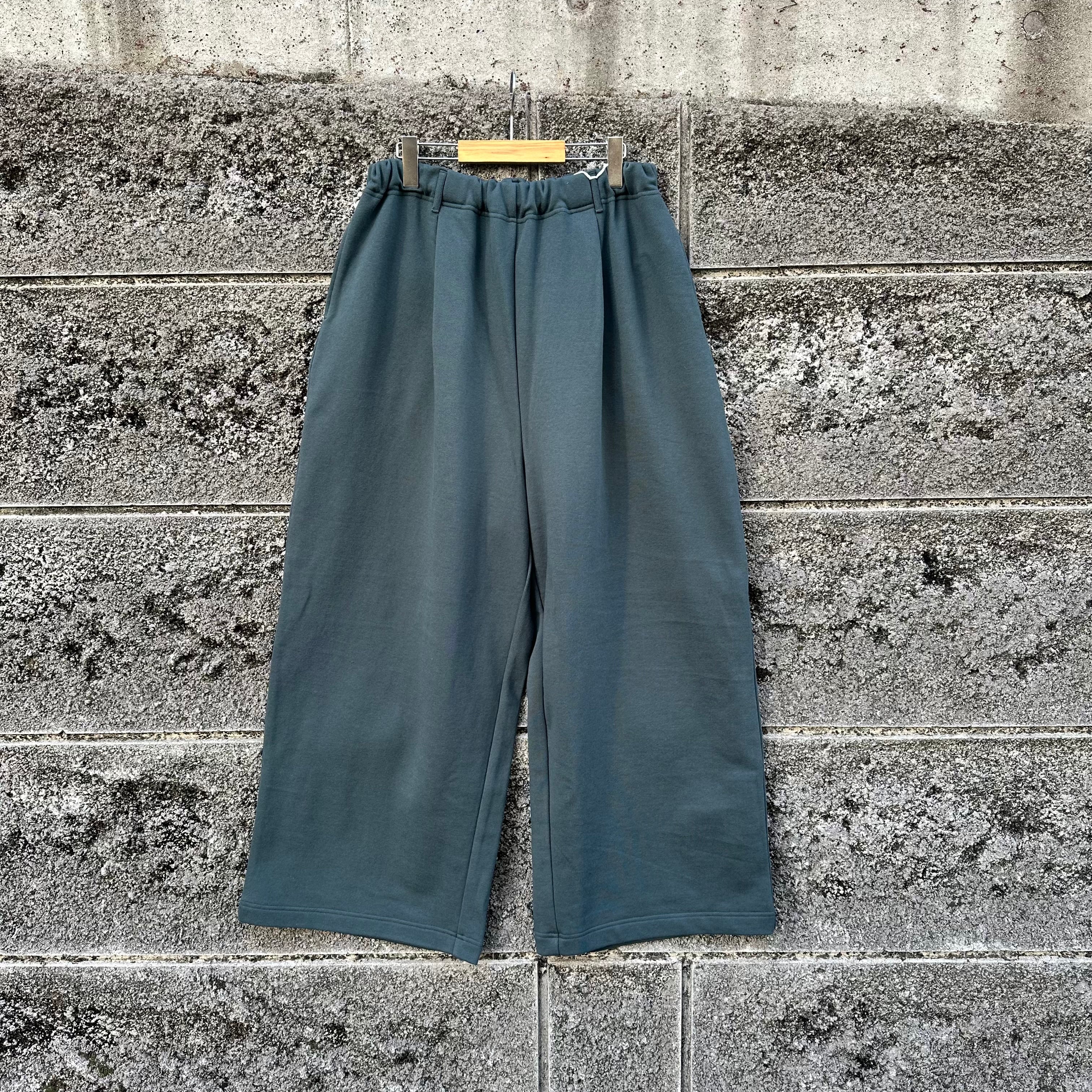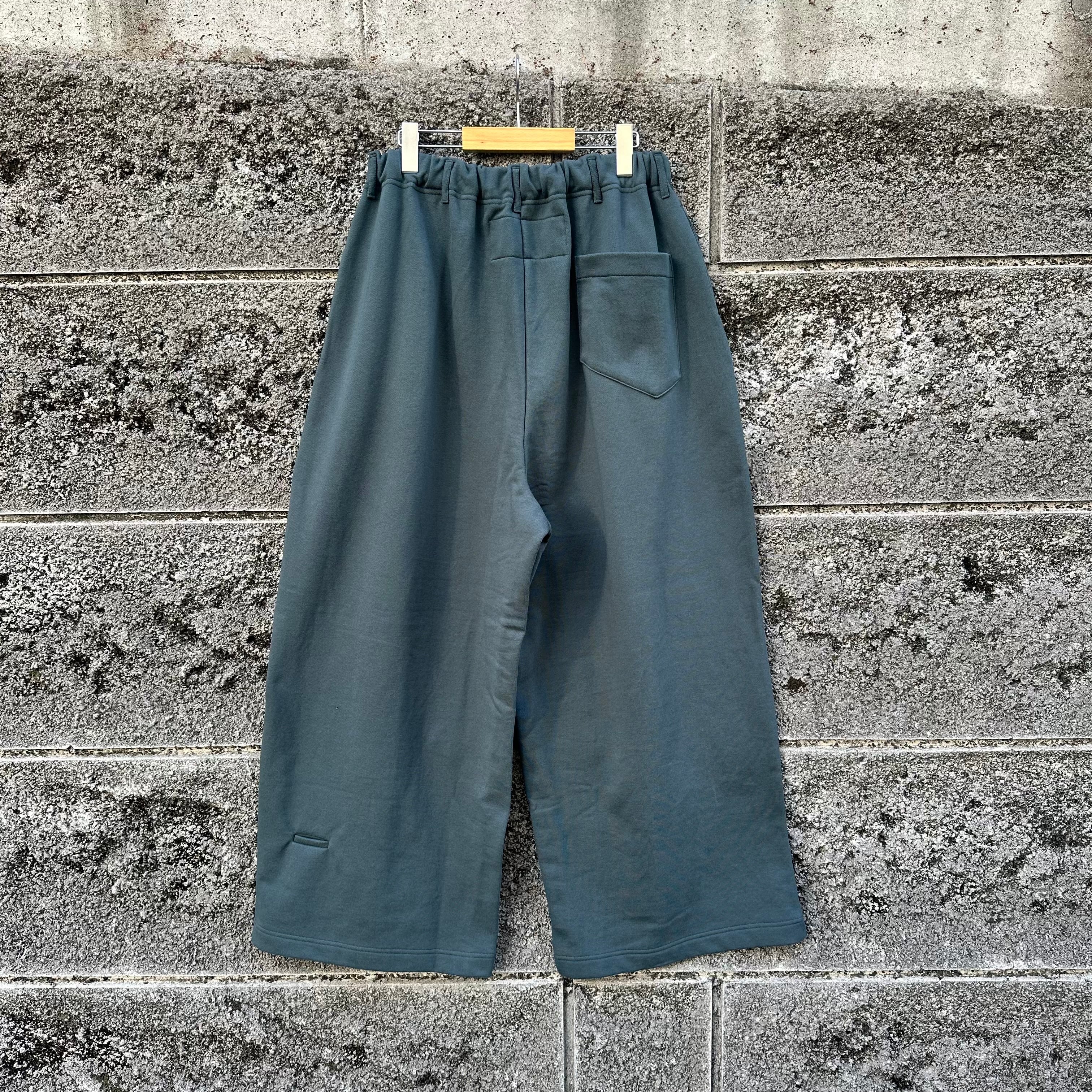 ボリューム感のあるワイドシルエットのスウェットパンツ。やわらかく着心地ともに、伸縮性、吸汗性も持ち合わせています。ウエスト内側に紐を通しているので、フィット感のある着用感とともに幅広い体系をカバーしてくれます。ベルトループも備えています。より大人な印象で、着用も可能です。裾元にはアイコン的ディテール「小さなポケット」の装飾も加えています。