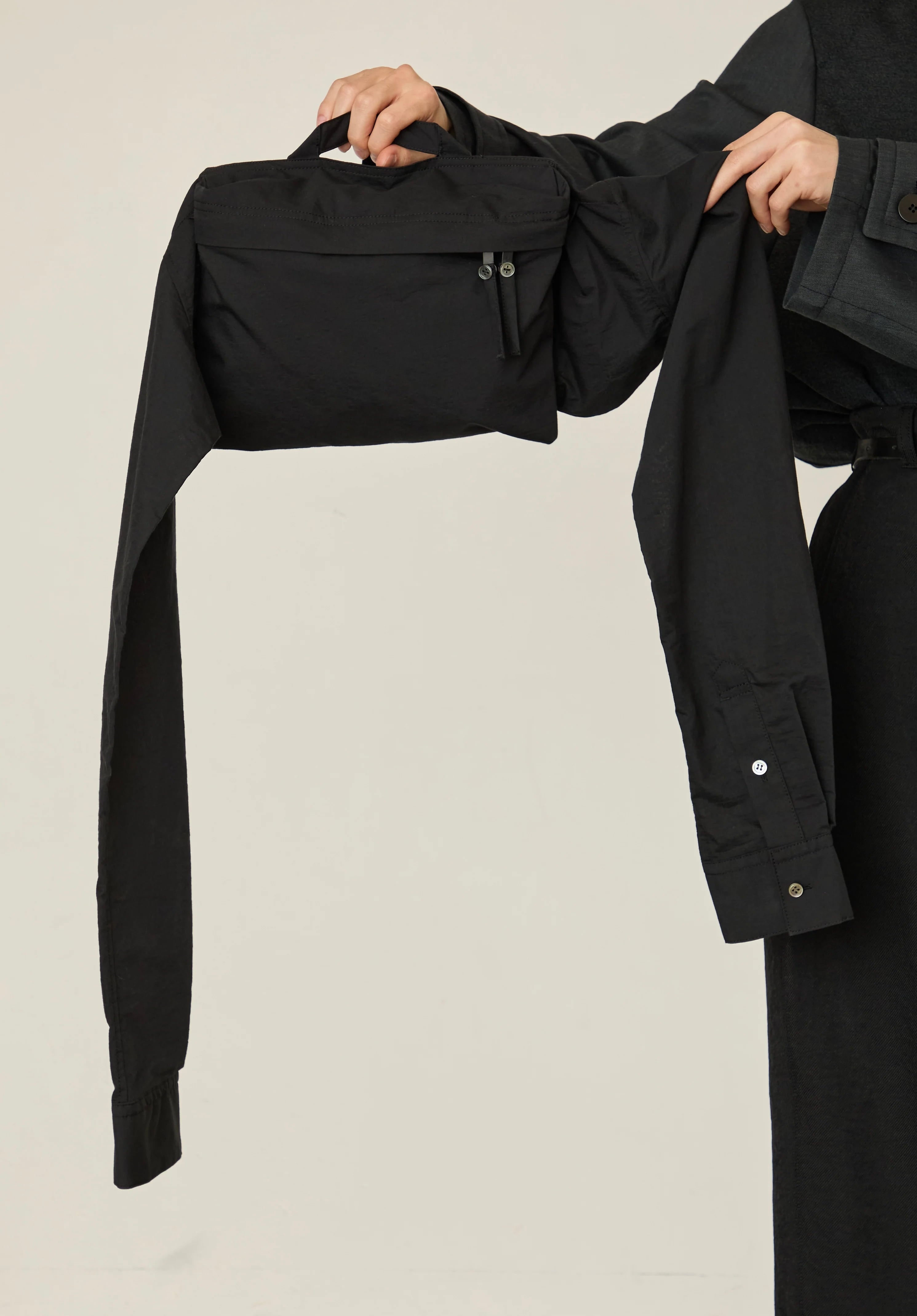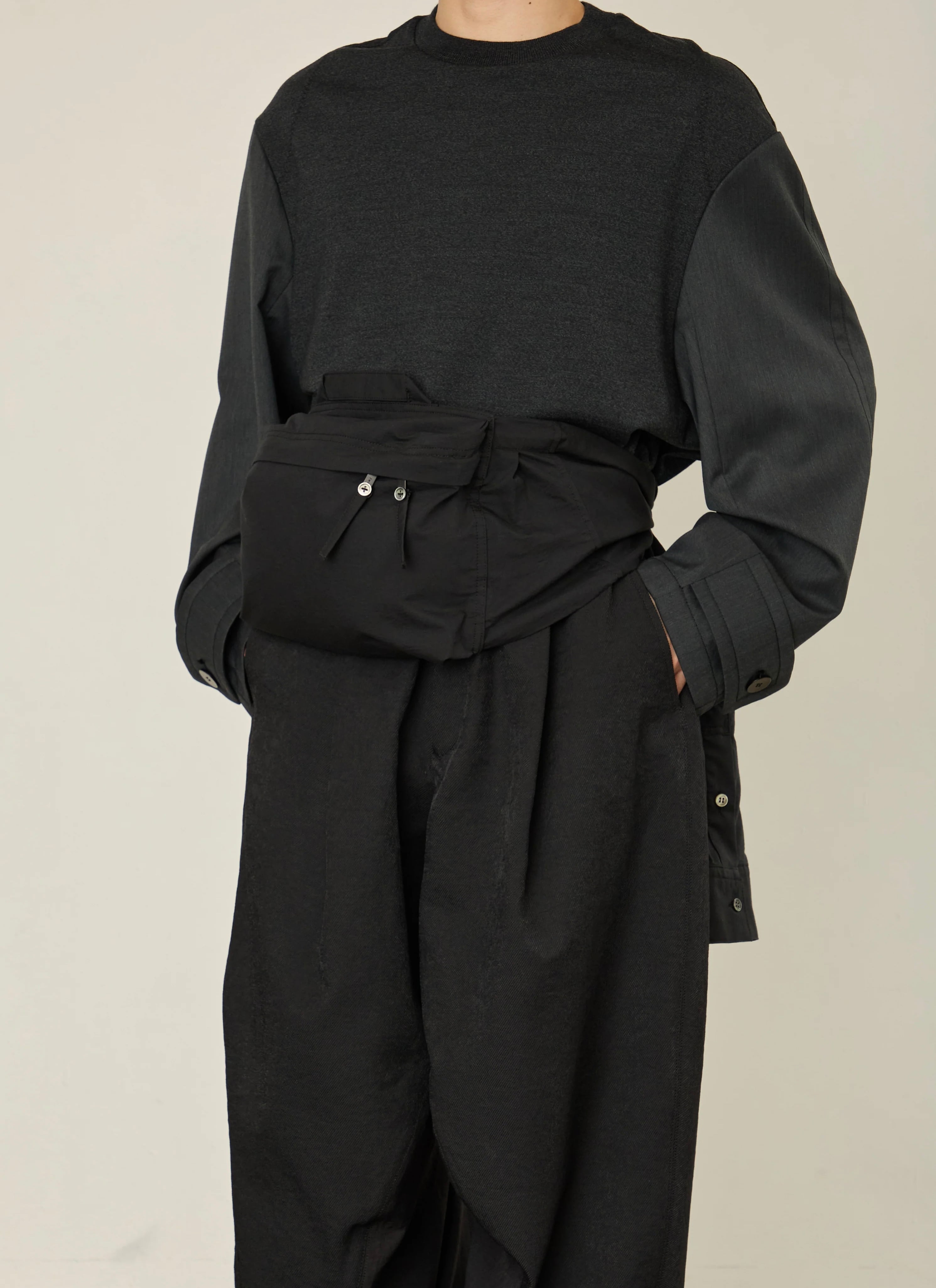 シャツ袖を、体に巻き、結んで固定するように使用します。
