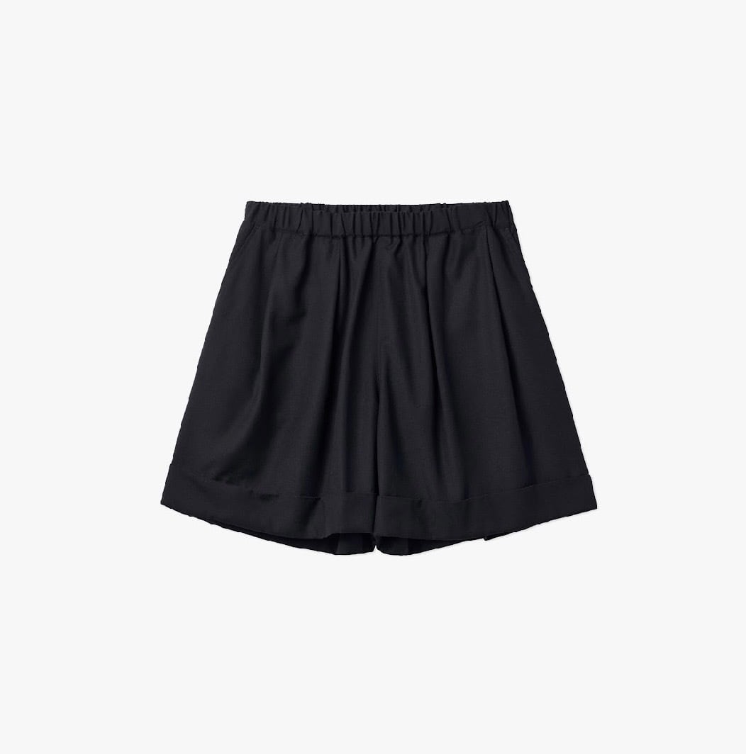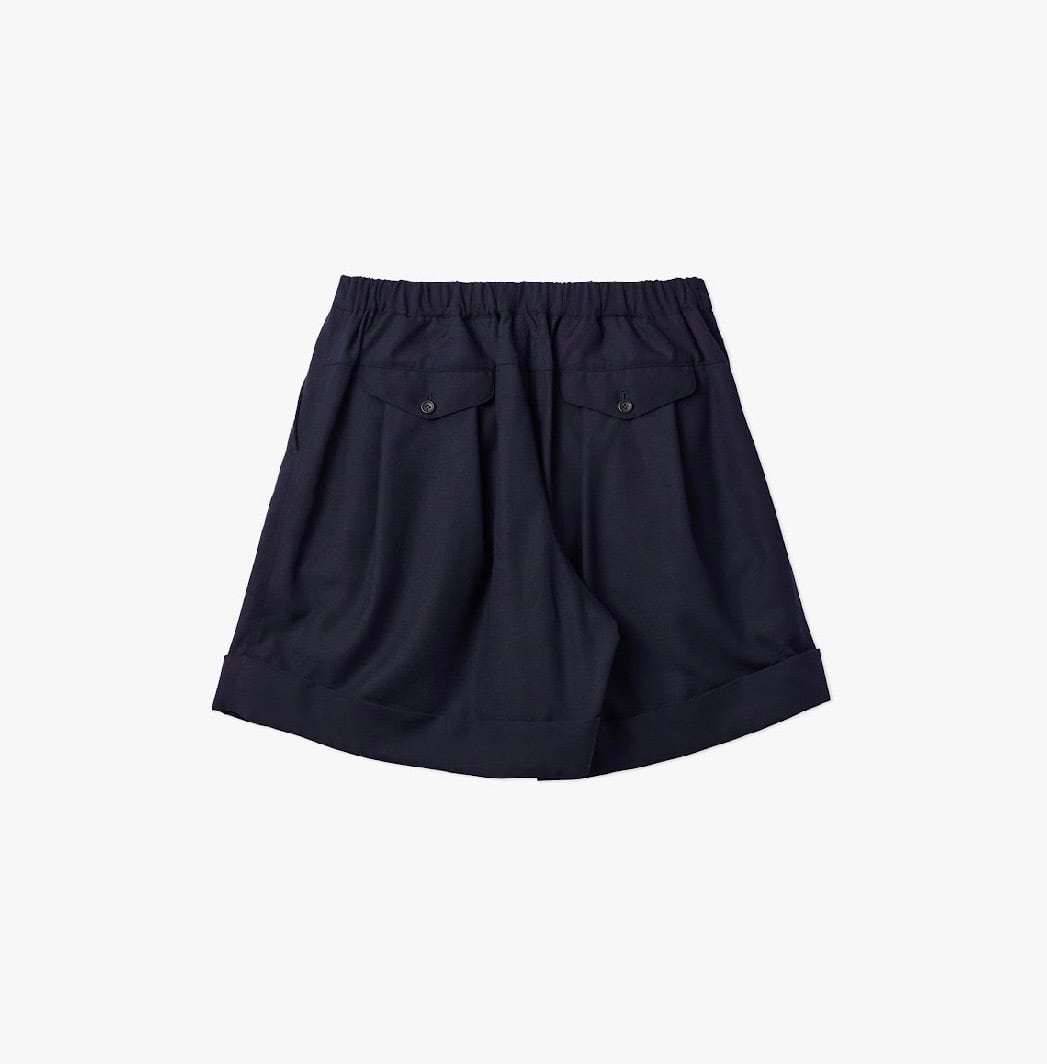 さらに、バックポケットにもタックを加えることで、立体的な動きとシルエットの奥行きを演出。軽装でもしっかりと存在感を放つショーツです。