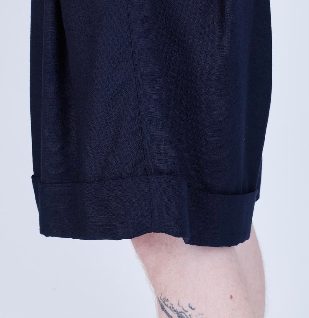 ワタリに大胆なボリュームを持たせ、股下との絶妙なバランスで魅せる、UNTRACE定番のカフスショーツ。