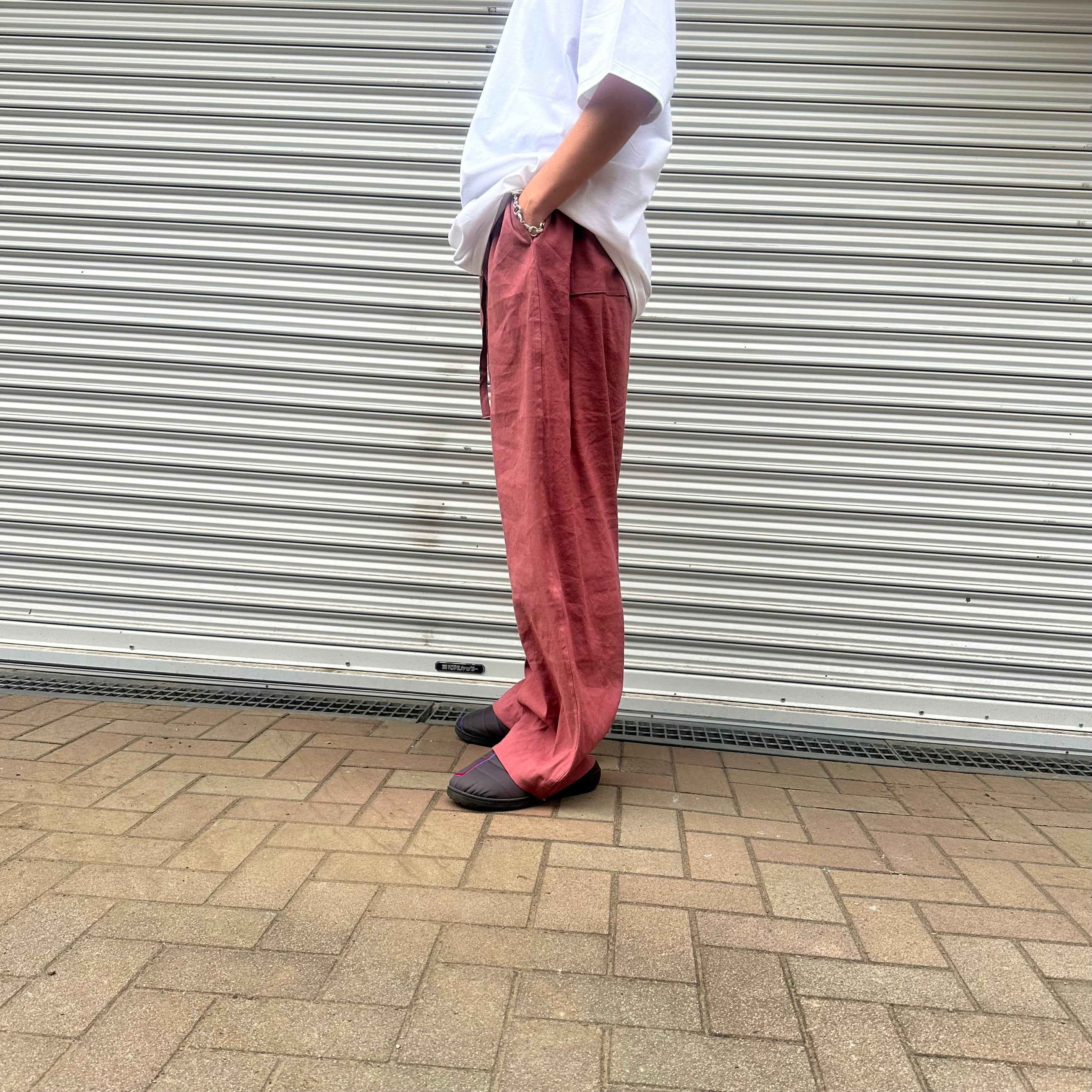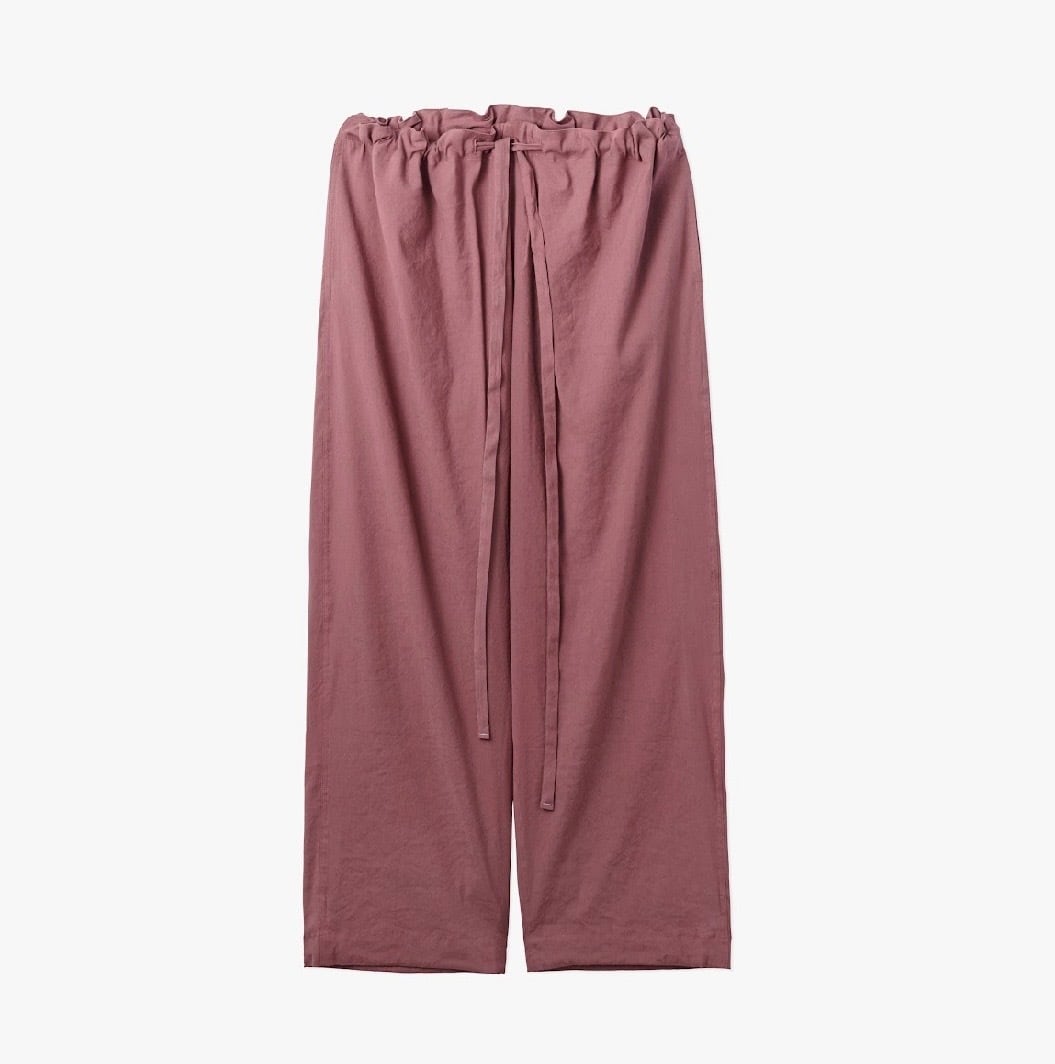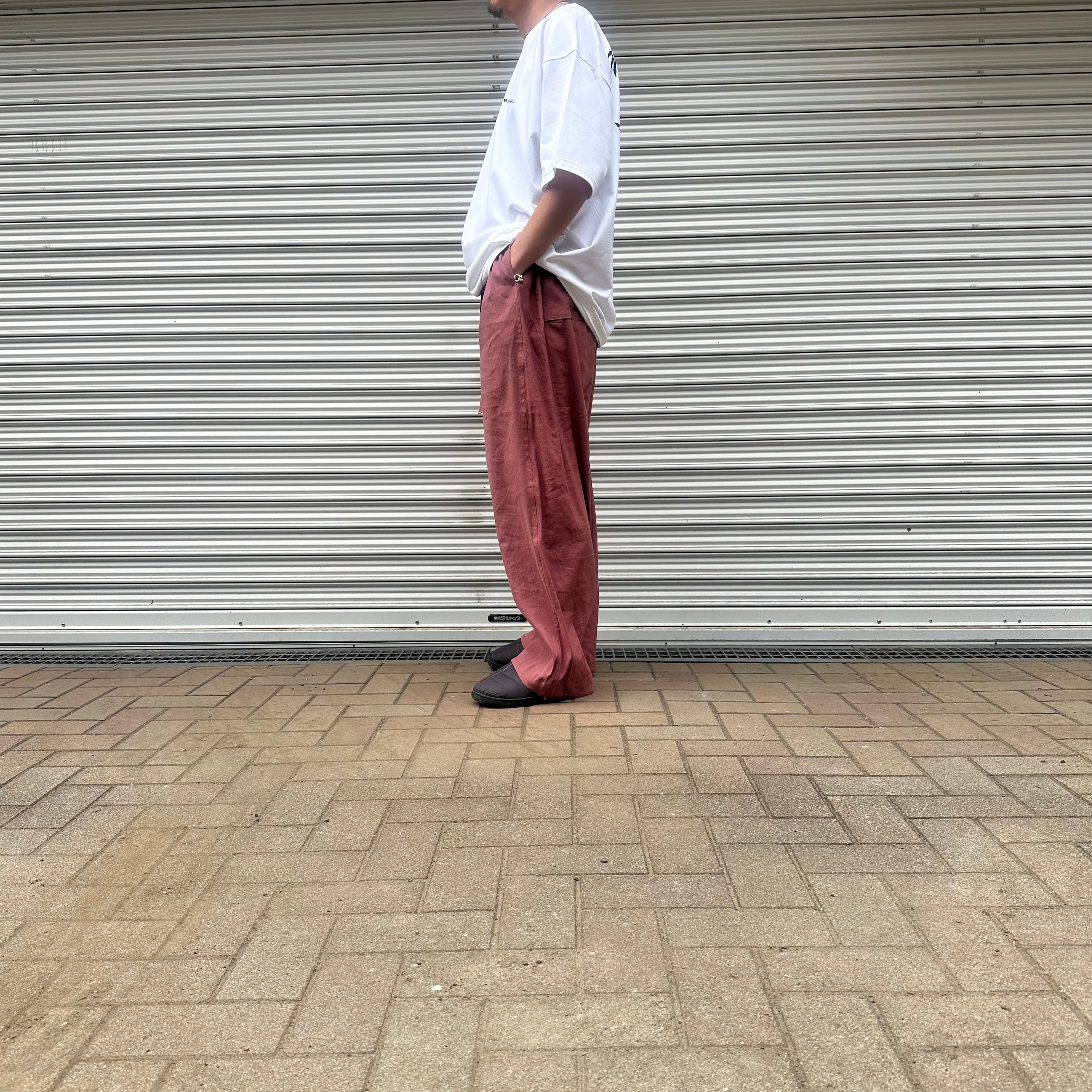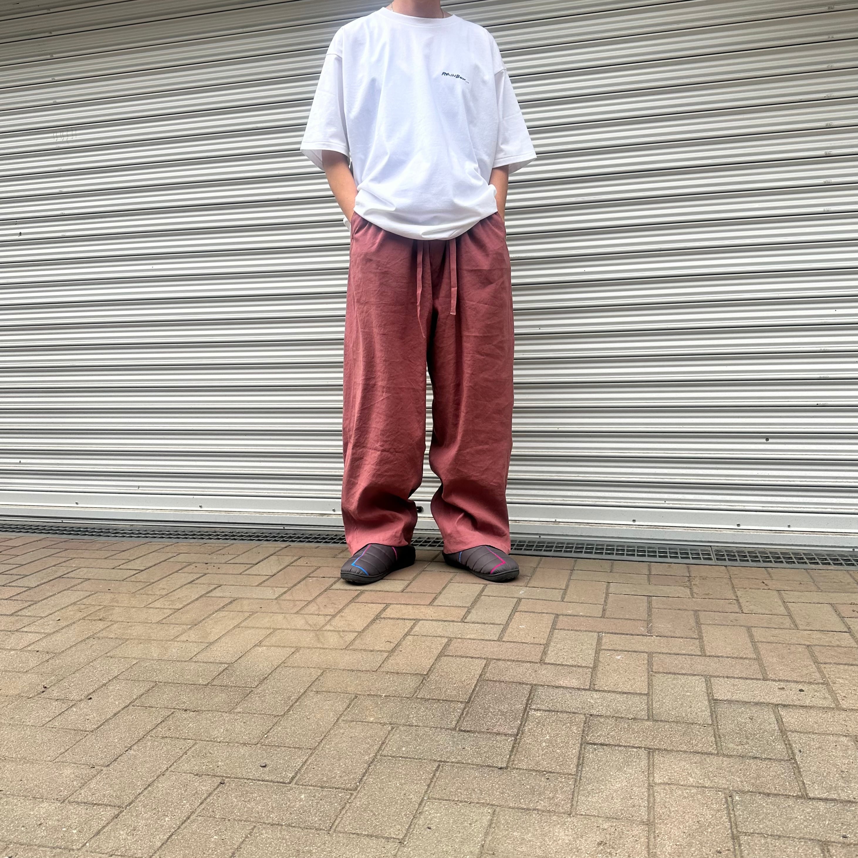 素材には、リネンとヴィスコースを交織した軽やかな布帛を採用。バイオウォッシュによるリネンの柔らかな風合いと、ヴィスコース特有の上品な落ち感が相まって、快適な穿き心地を実現しています。