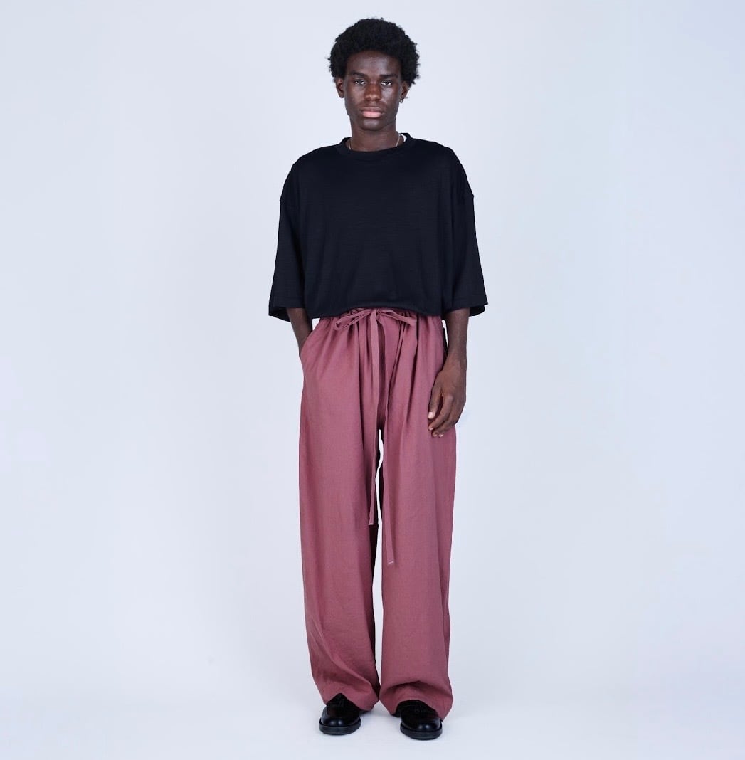 道着や袴を彷彿とさせる、新作のビッグワイドパンツ。