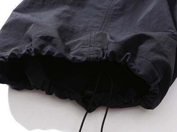 裾にはドローコードとストラップを備え、シルエットの調整が可能。