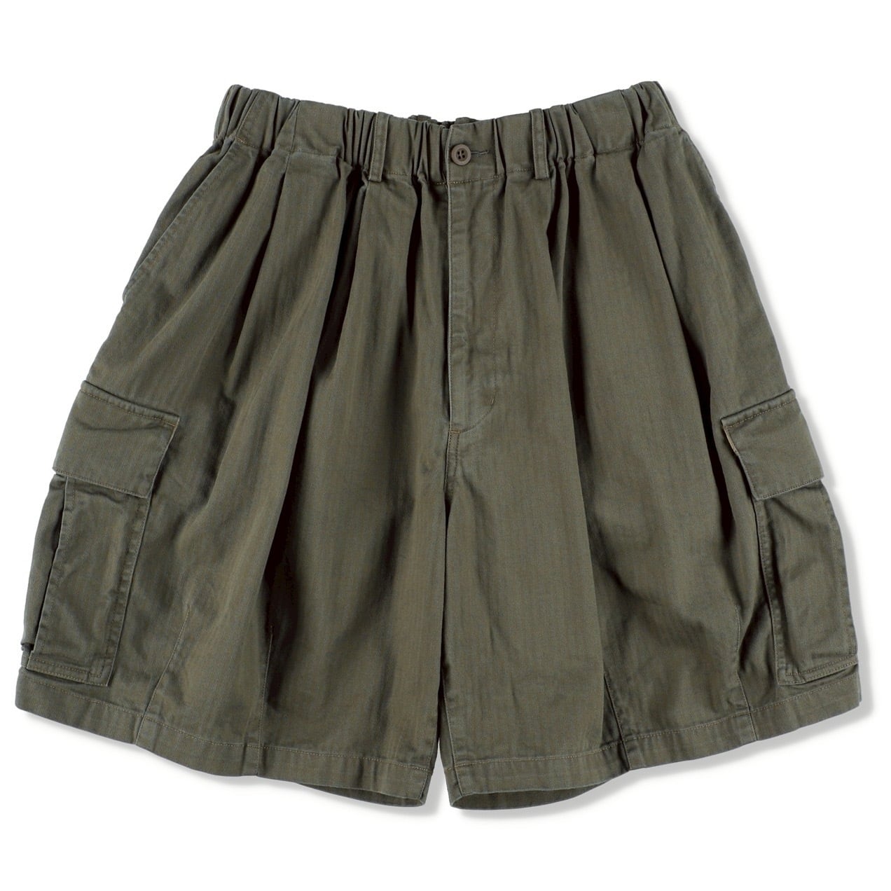 タフな質感と味わい深い風合いを持つコットンヘリンボーン生地に、バイオ加工を施した6ポケットショーツ。