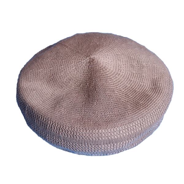 カシミヤ入りの糸を使い、風合いと肌ざわりの良さが増した、メッシュ状のベレー帽。