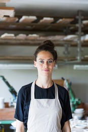 1986 年オランダ生まれ。Design Academy Eindhoven を2011年に卒業後、自身のスタジオStudio Kirstie van Noort を設立、アイントホーヘンを拠点に活動している。卒業プロジェクト“Ceramic Paint / Collection Cornwall “では、陶芸家のFrans Ottink に協力を得て共同制作を行う。在学中には、ギャラリーのコミッションワークも手がけている。土、釉薬についてその都度さまざまなリサーチを行い、陶磁器についての知識と経験を積みながら、セラミック陶器のプロダクトを中心に様々なプロジェクトを展開している。