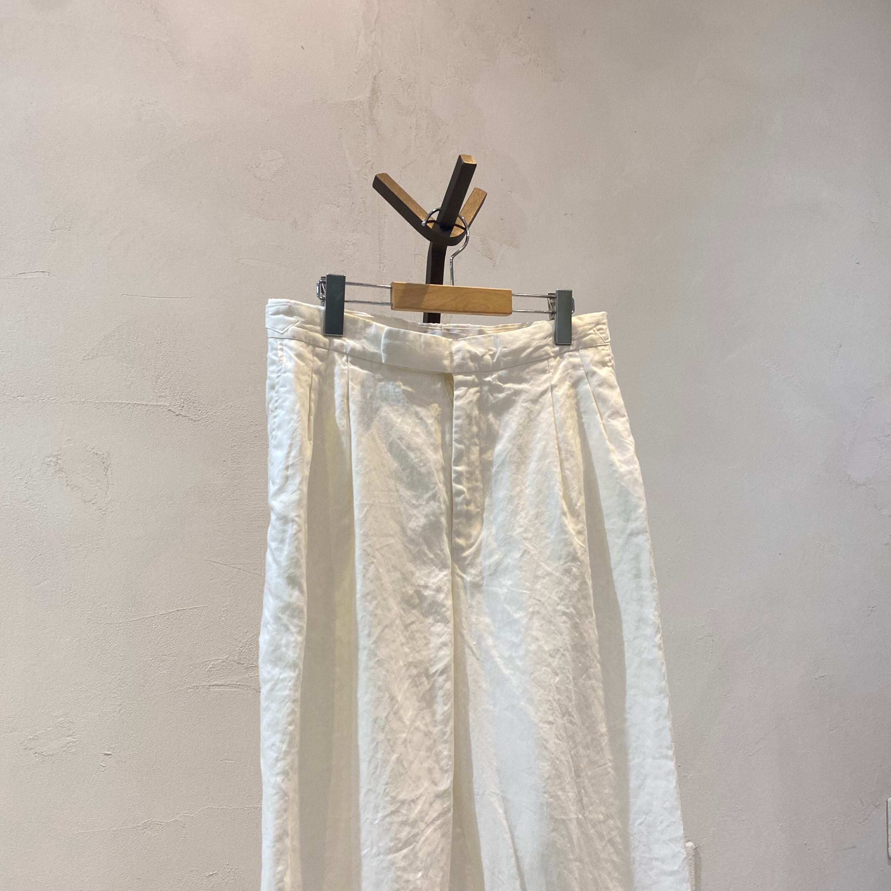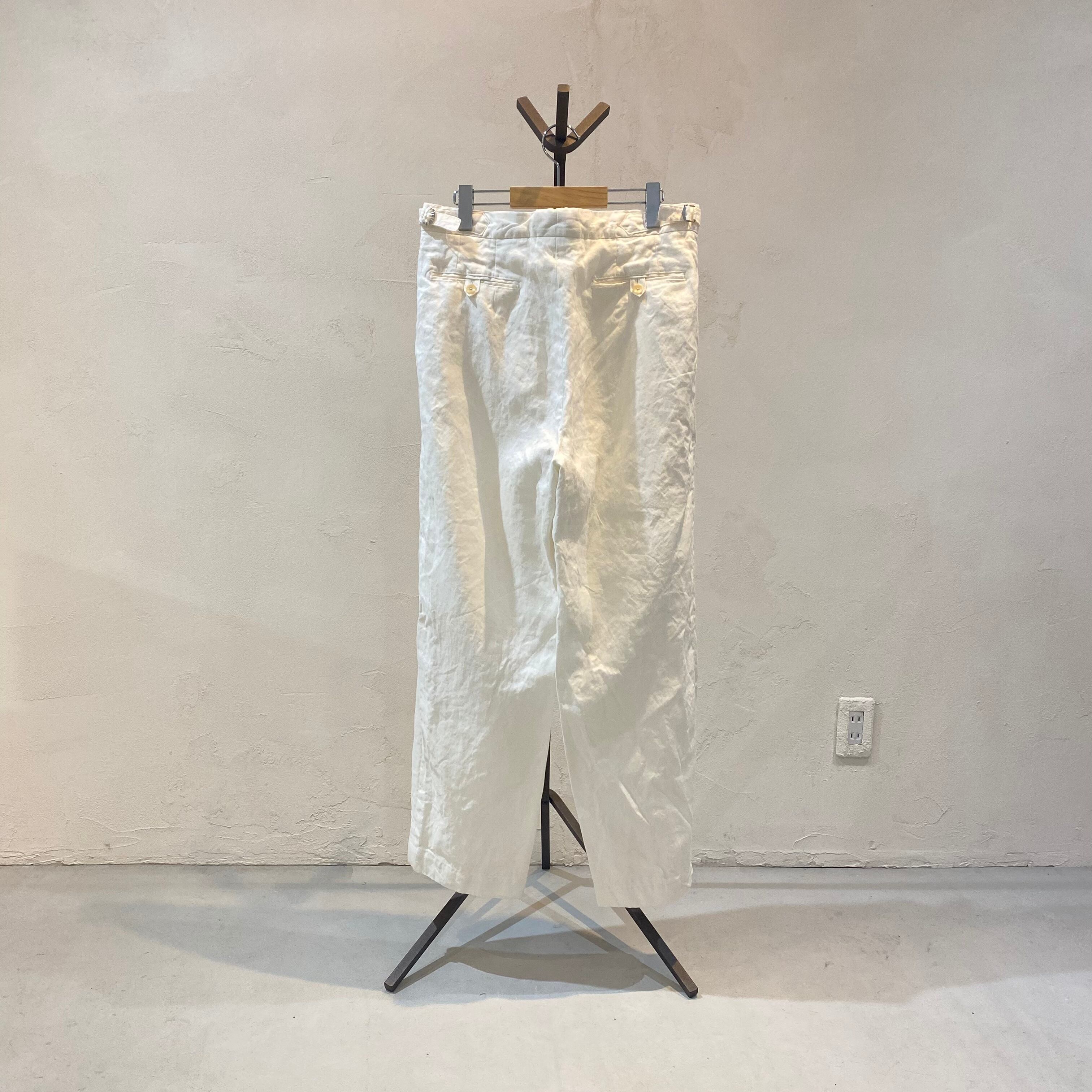 春夏らしい清涼感を感じさせるオーガニックラミーのオックスフォード生地で制作したブリティッシュアーミートラウザーズとなります。