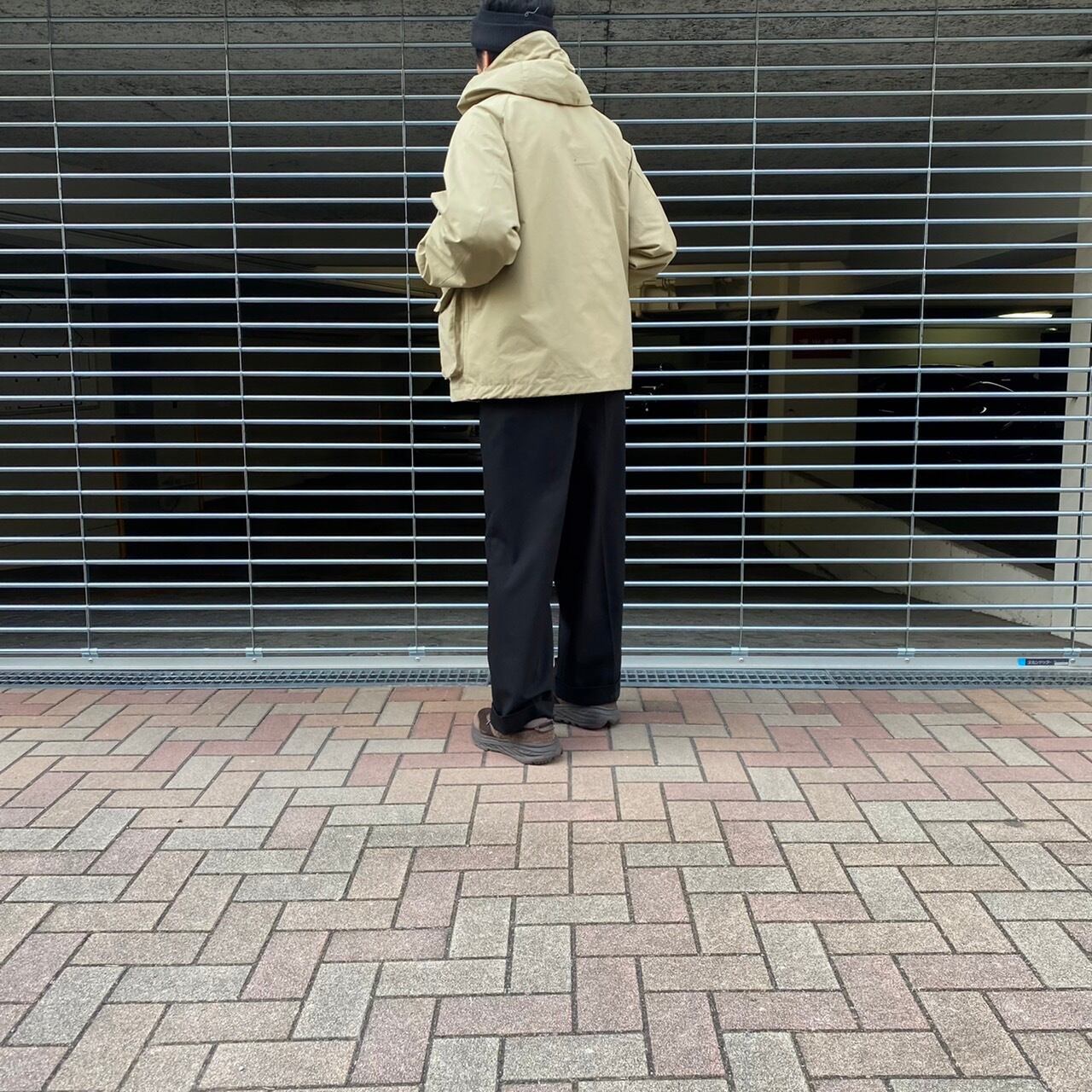 ボリュームのある首元は、硬い生地によってフードが綺麗に立つところも魅力。