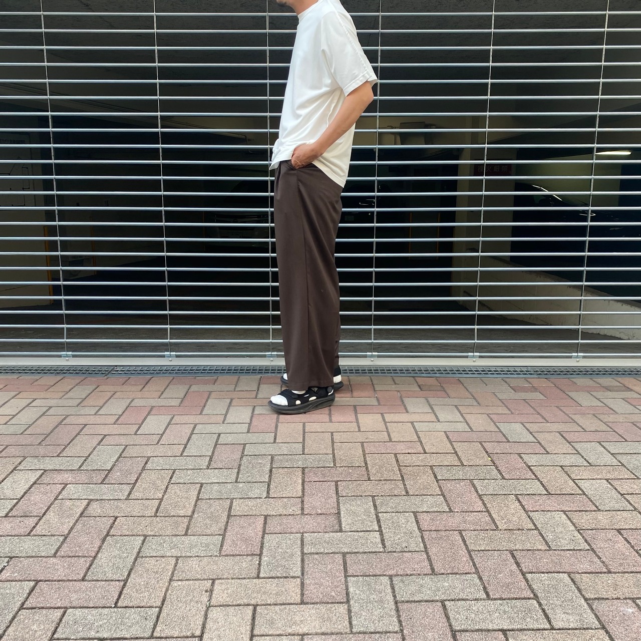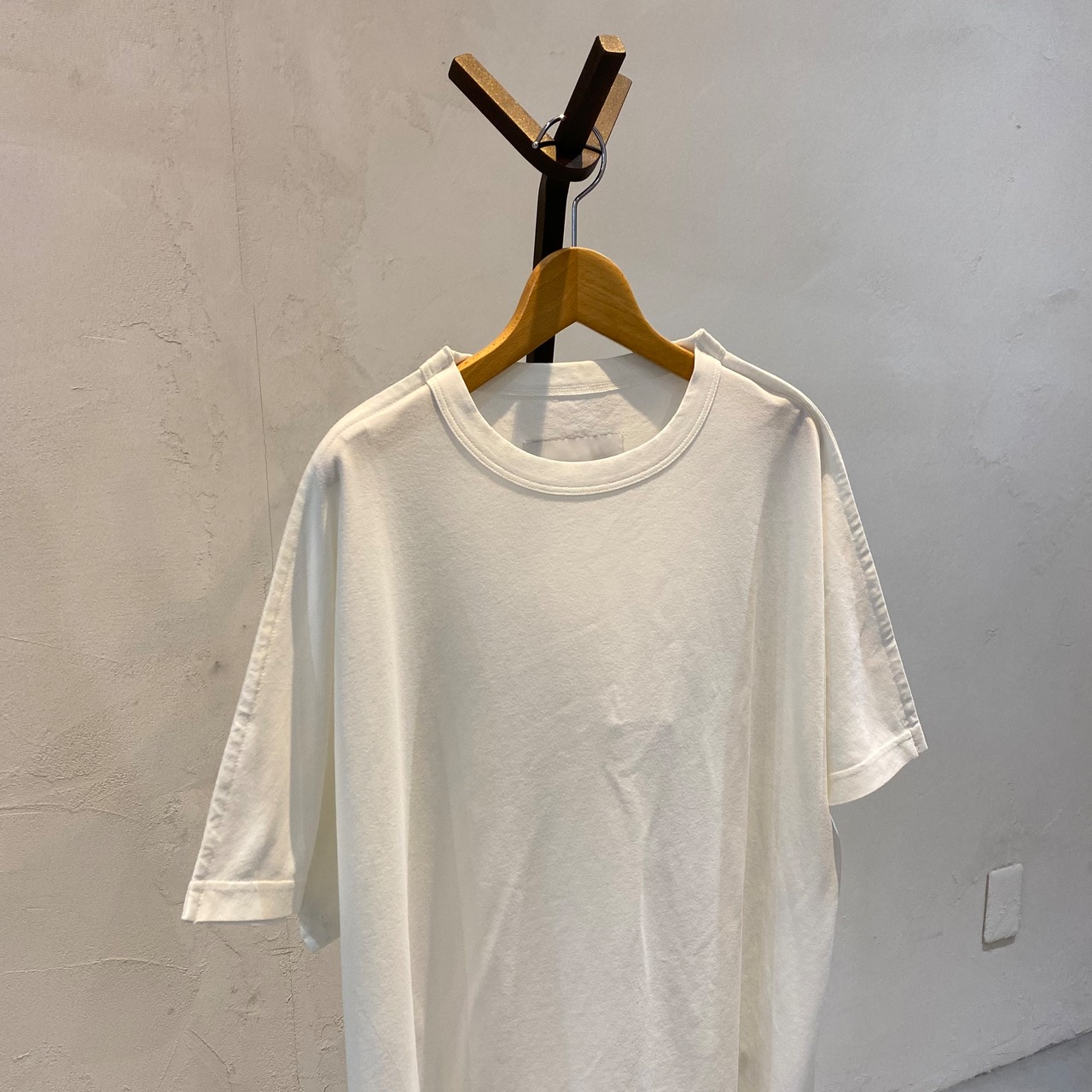 ベースとなる形は、袖と⾝頃が⼀体となった⾒頃が、2枚重なっただけの、スーパーフラットなパターン構成としています。