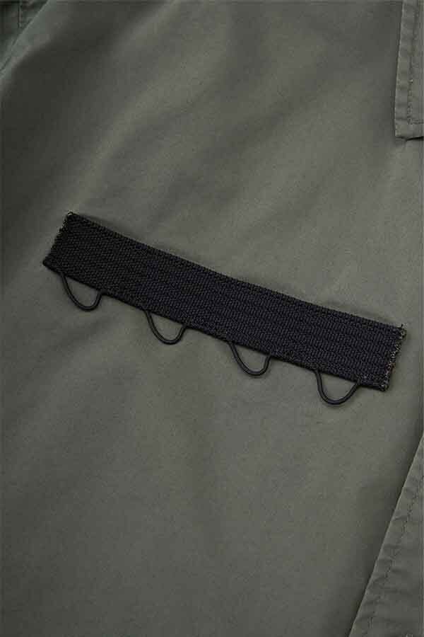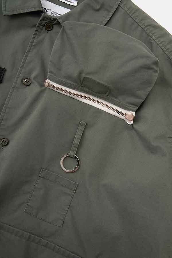 ソロテックスを顔料染めした生地を使用したレギュラーカラーの素材を使用し、その名の通り6つのポケットを搭載しております。左胸ポケットは着脱可能となっており、機能性の高いシャツとなっております。