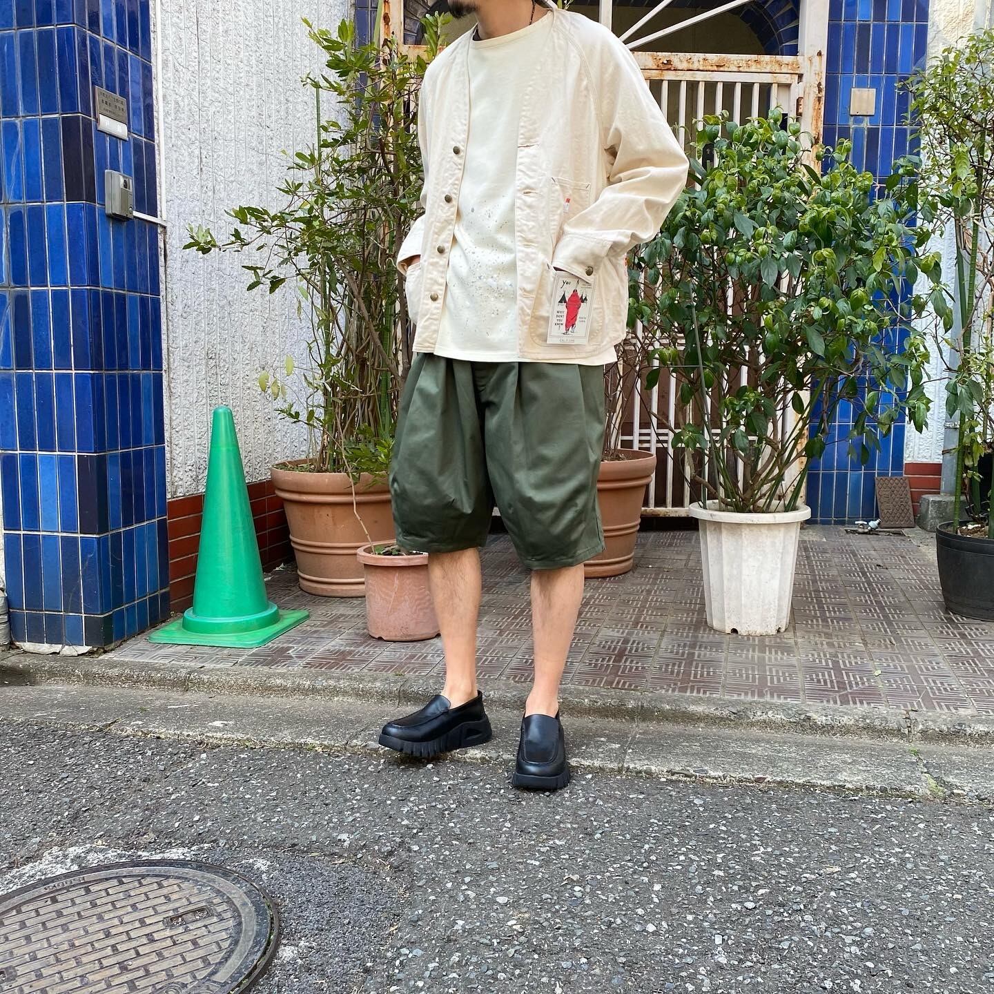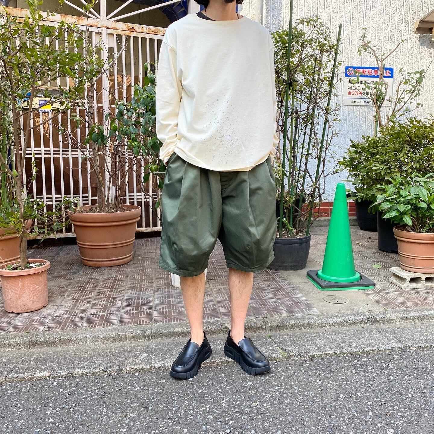極太のワタリと裾にダーツによって作られるふくらみあるシルエットが特徴。