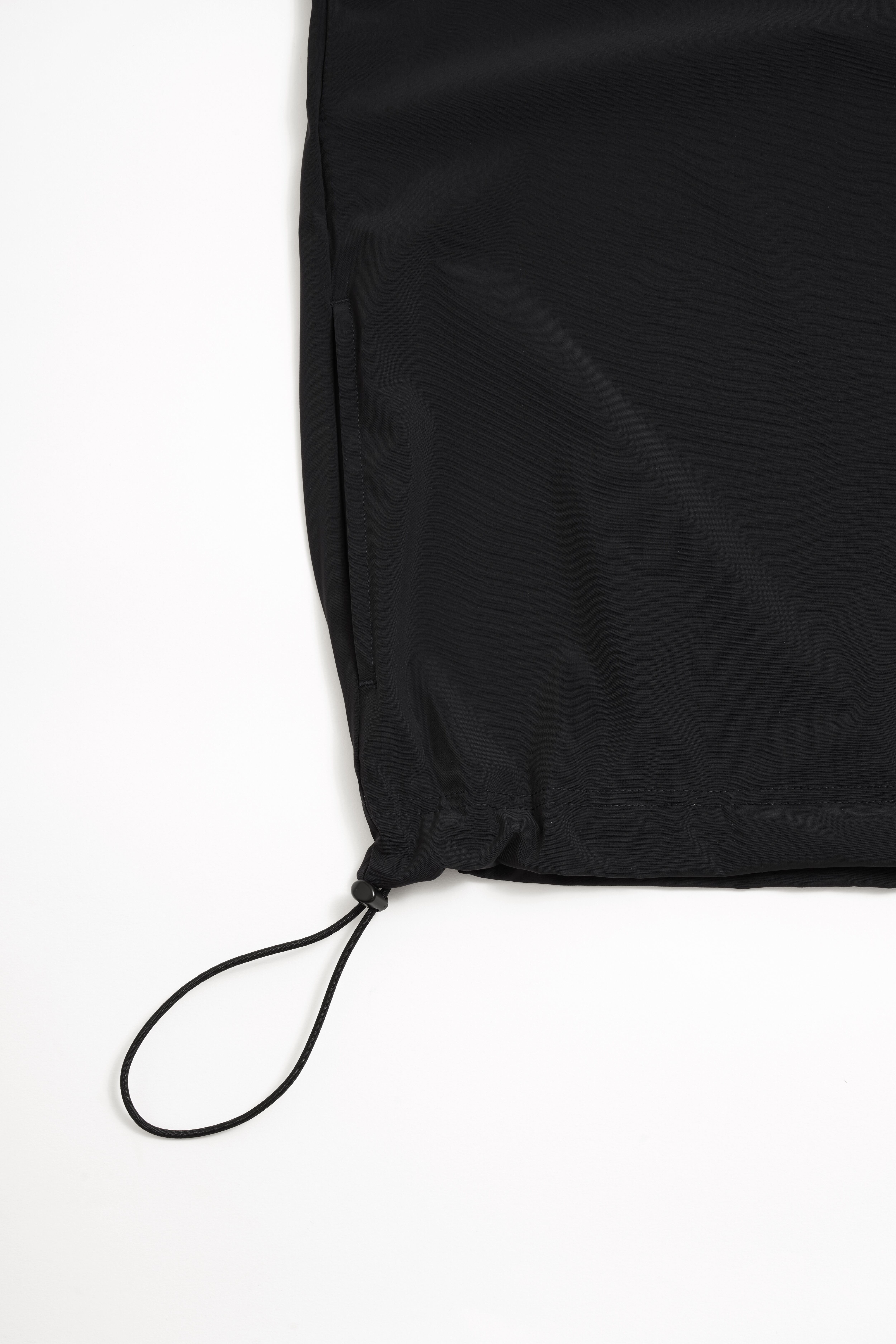 両サイドのポケット、裾のドローコードは踏襲しつつ、袖のリブ切り替えで、より動きやすく設計。