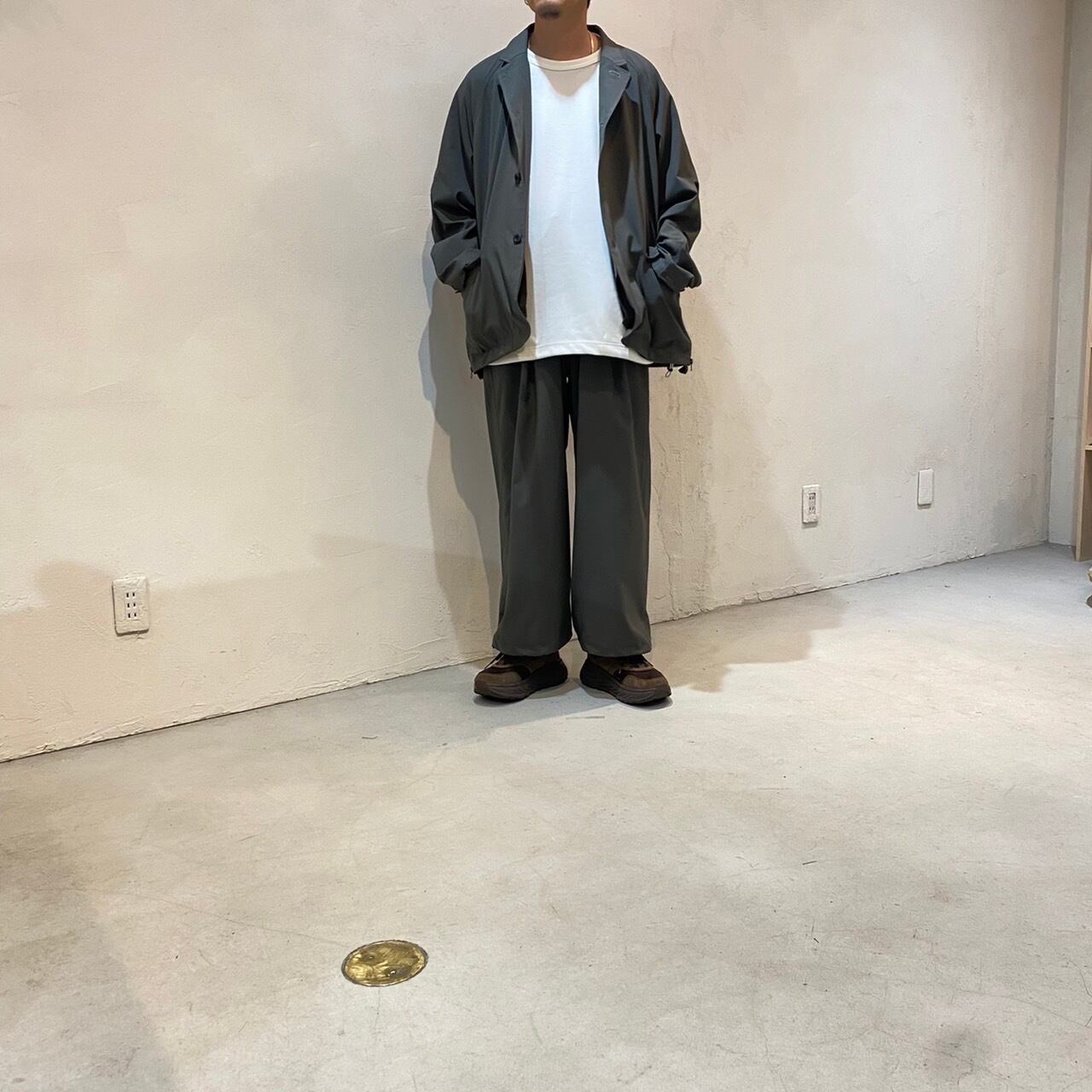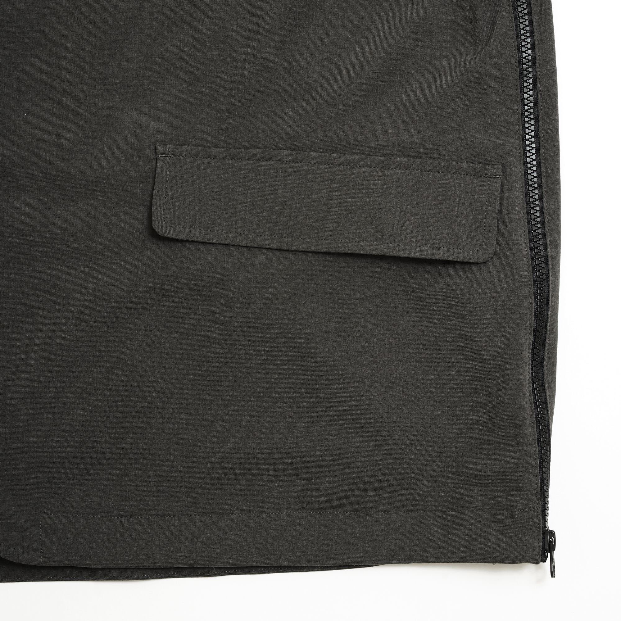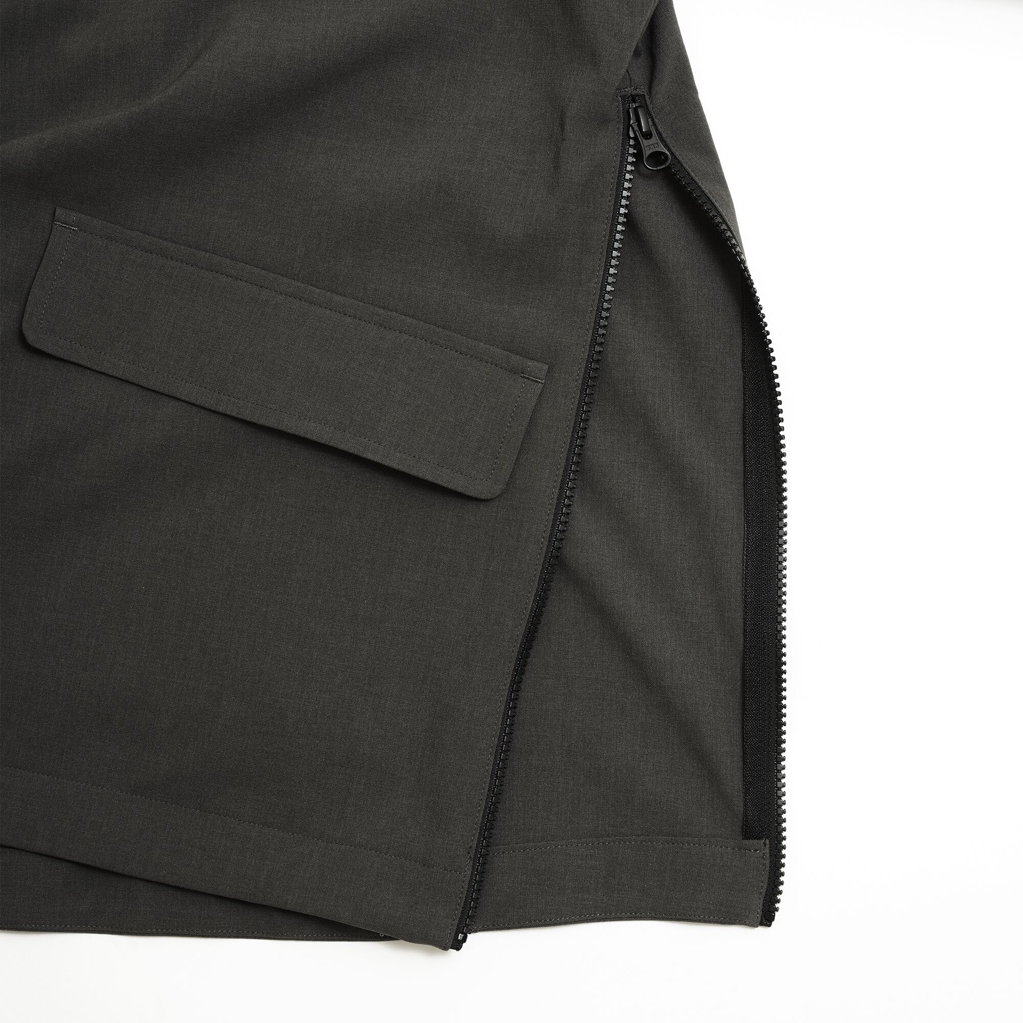 裾の両サイドにはジャケットを着たままパンツのポケットにアクセスできるようにZIPスリットが入っています。