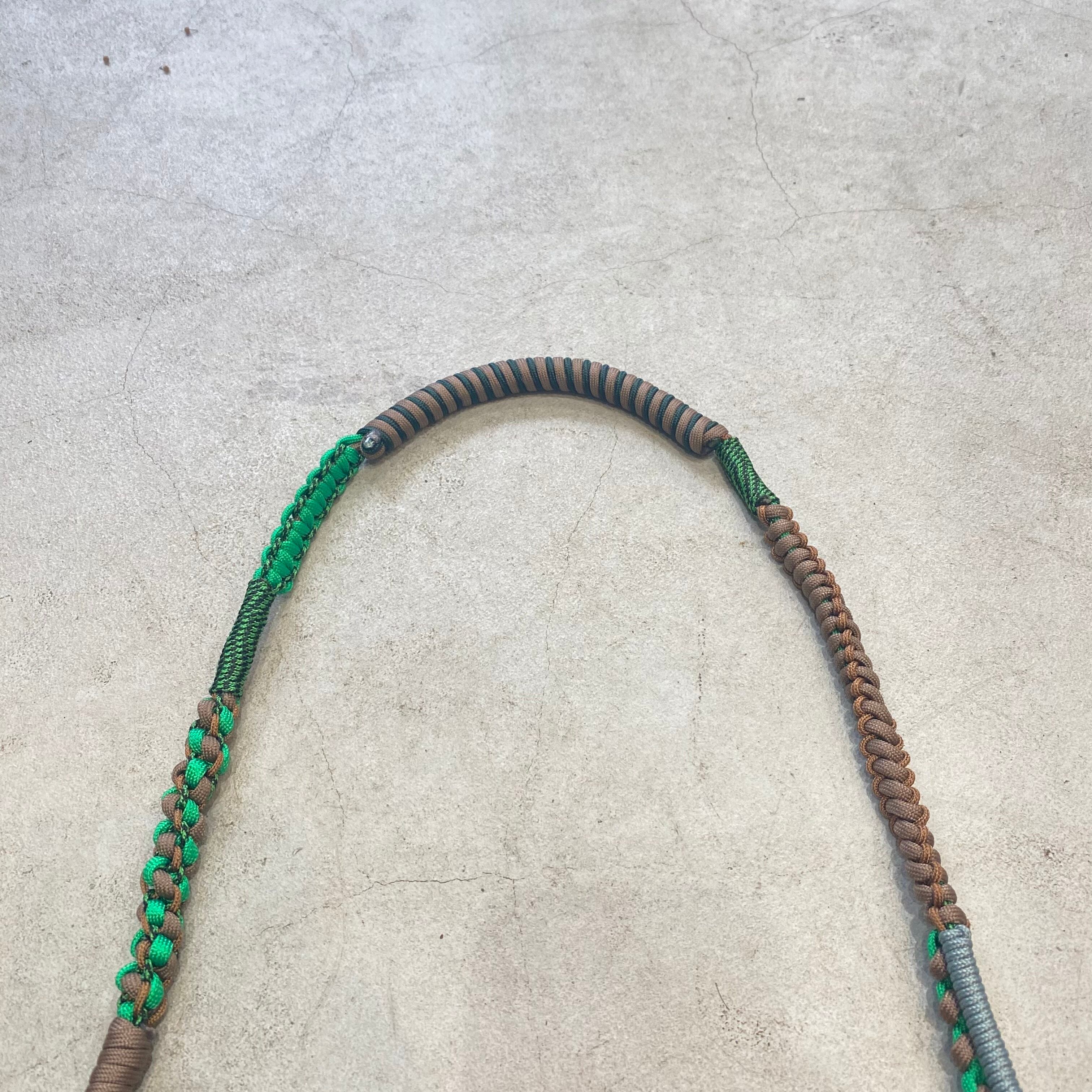 ナイロンのパラコードを様々な配色と編み方で1本のストラップに仕上げた、“Ropestyle001 Jumble Strap”。