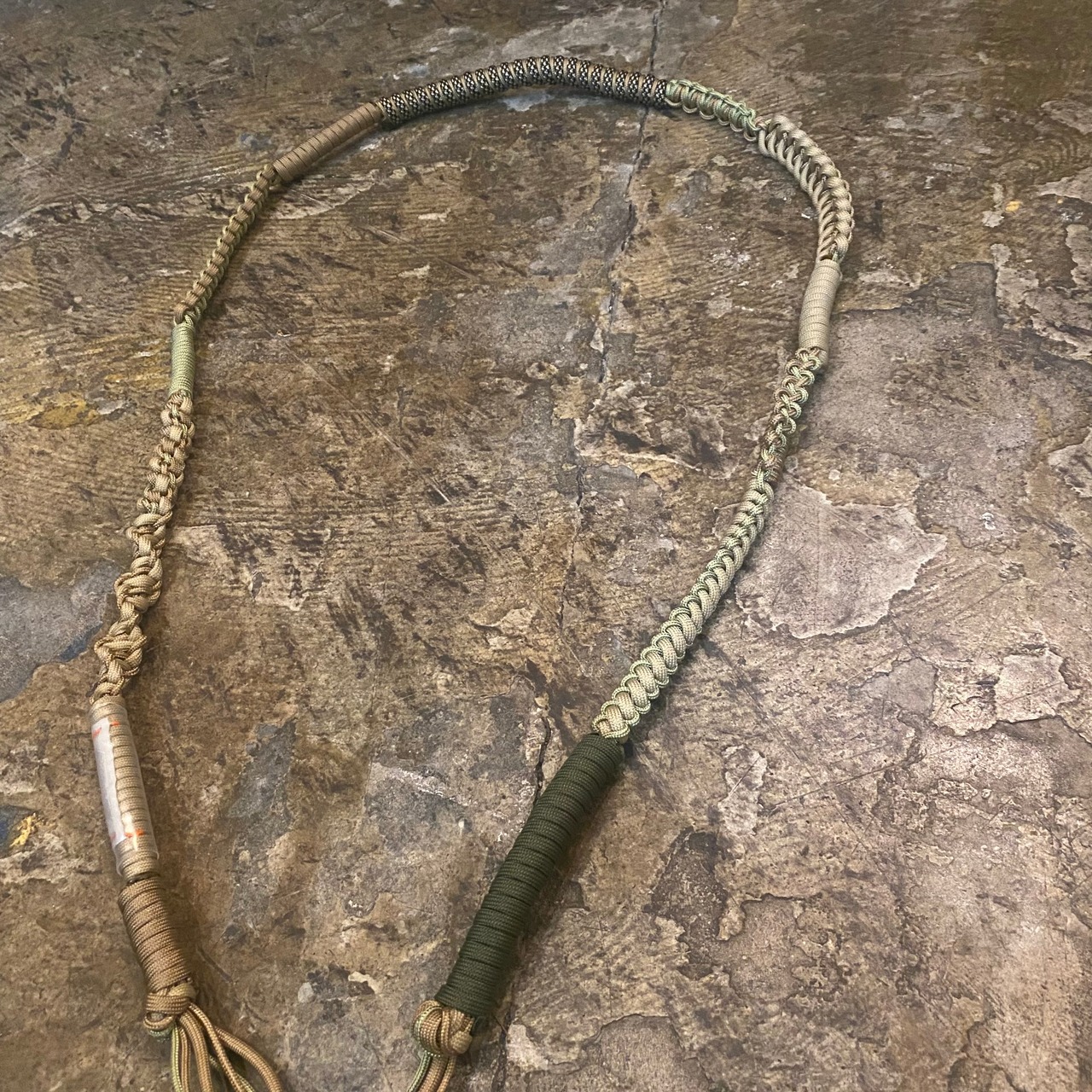 ナイロンのパラコードを様々な配色と編み方で1本のストラップに仕上げた、“Ropestyle001 Jumble Strap”。