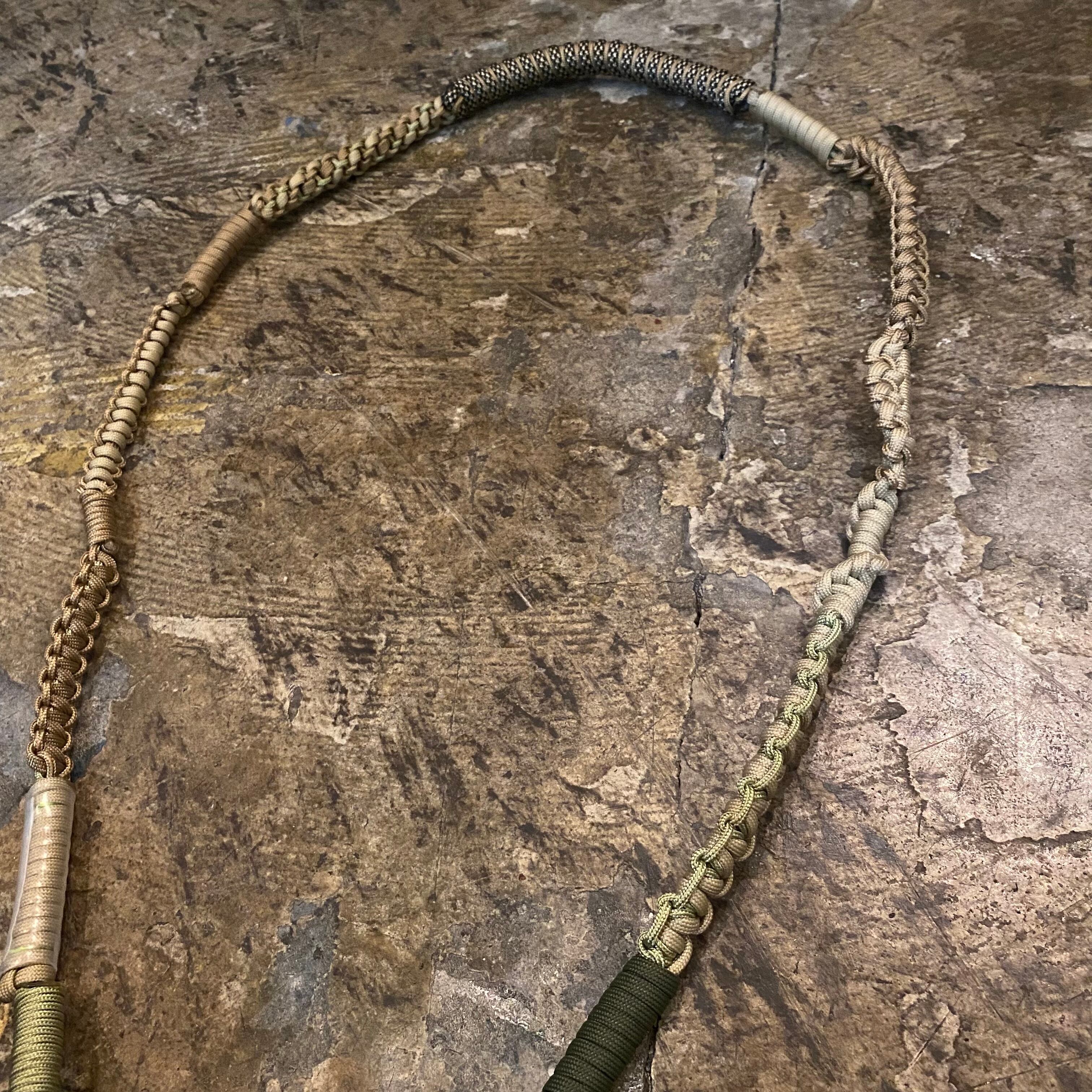 ナイロンのパラコードを様々な配色と編み方で1本のストラップに仕上げた、“Ropestyle001 Jumble Strap”。
