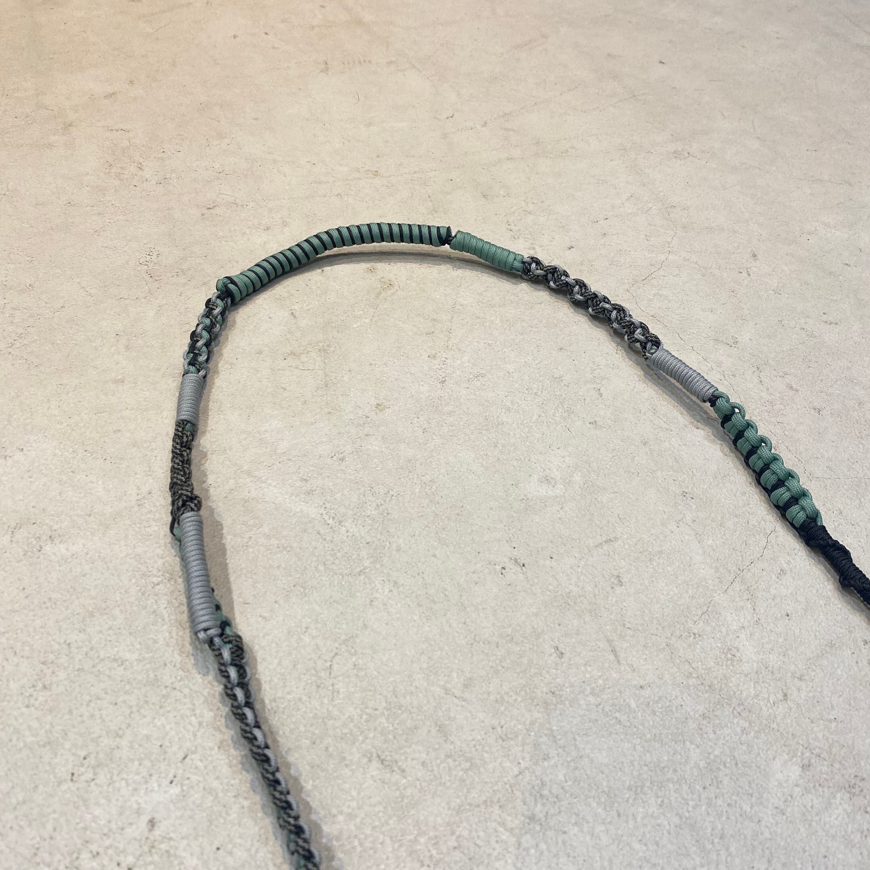 ナイロンのパラコードを様々な配色と編み方で1本のストラップに仕上げた、“Ropestyle001 Jumble Strap”。