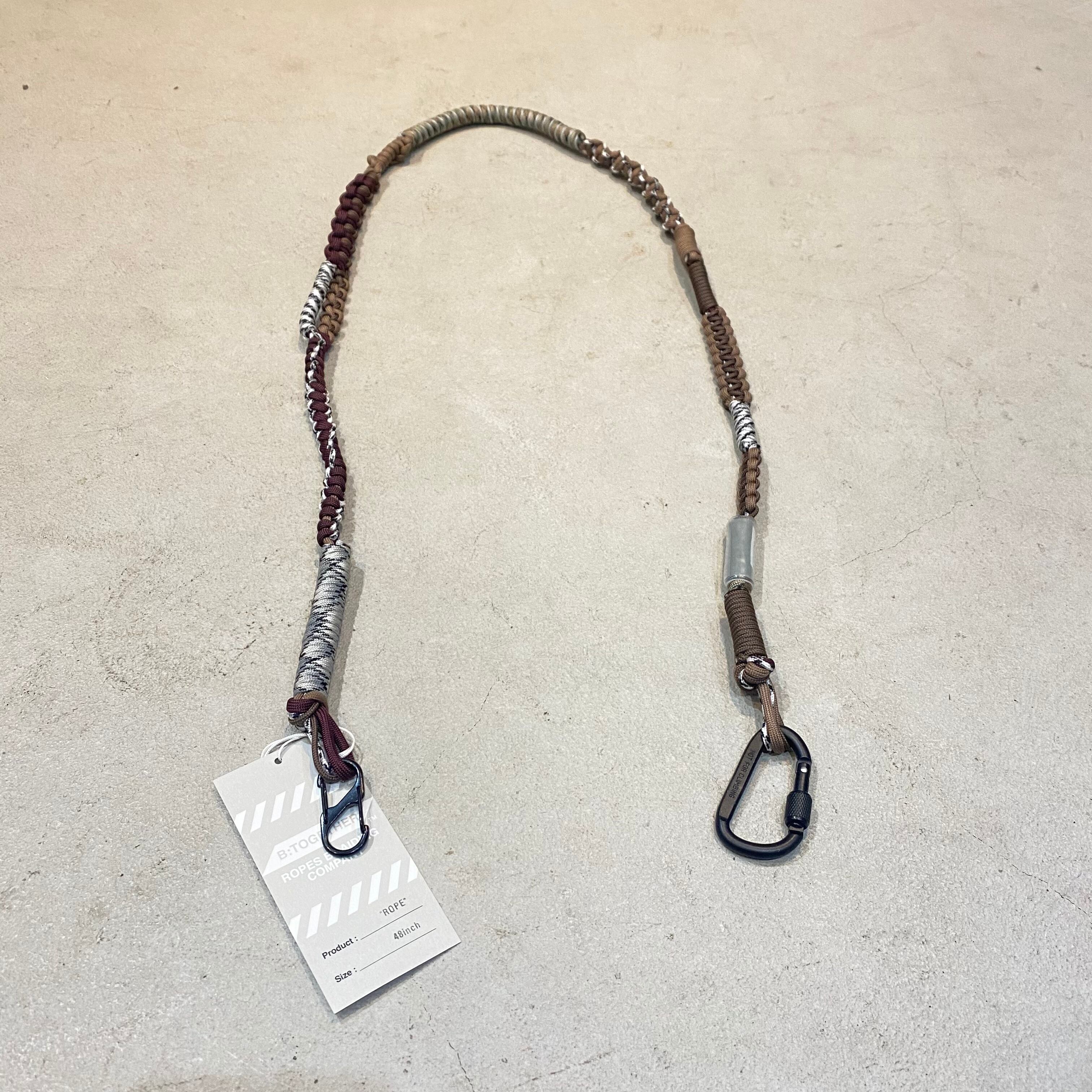ナイロンのパラコードを様々な配色と編み方で1本のストラップに仕上げた、“Ropestyle001 Jumble Strap”。