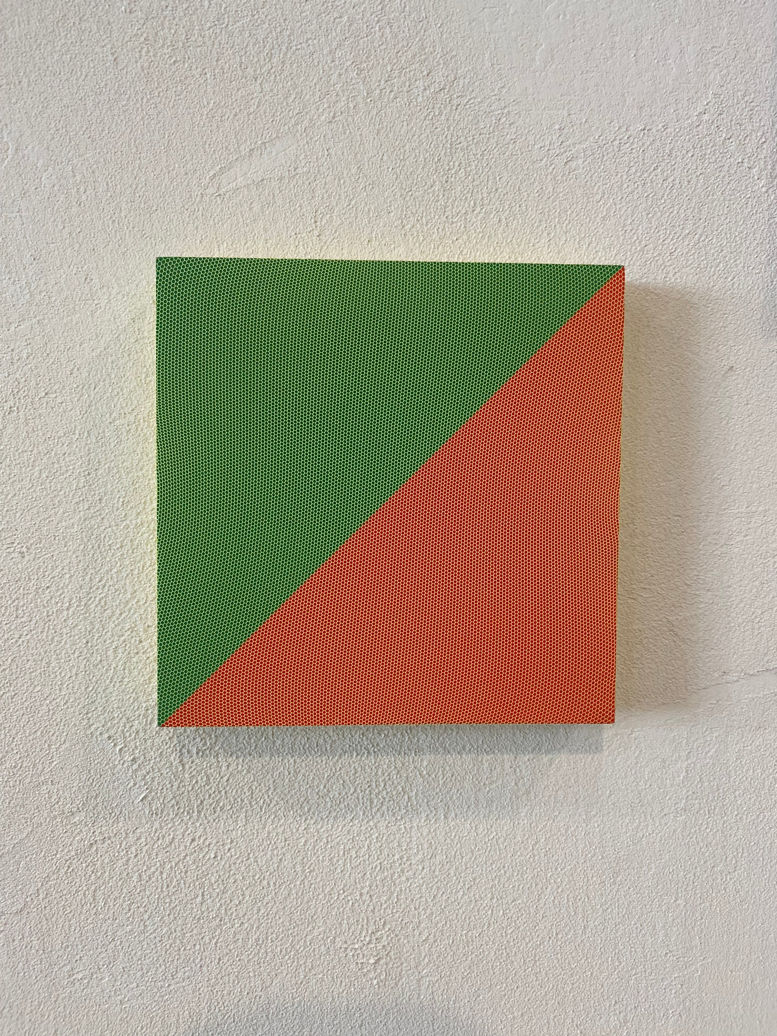 QUALITY-Mesh fabric and acrylic on wood panel