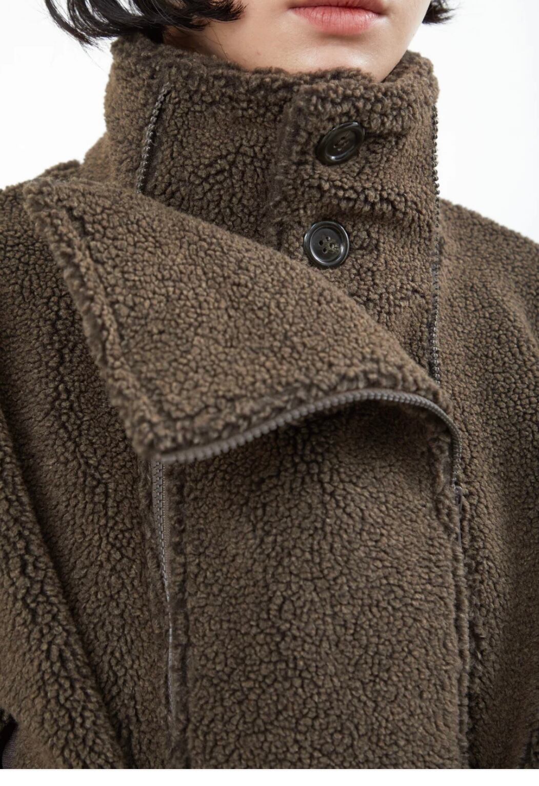 落ち着きのある上品なメランジカラーのボア素材を使用したボアブルゾン。