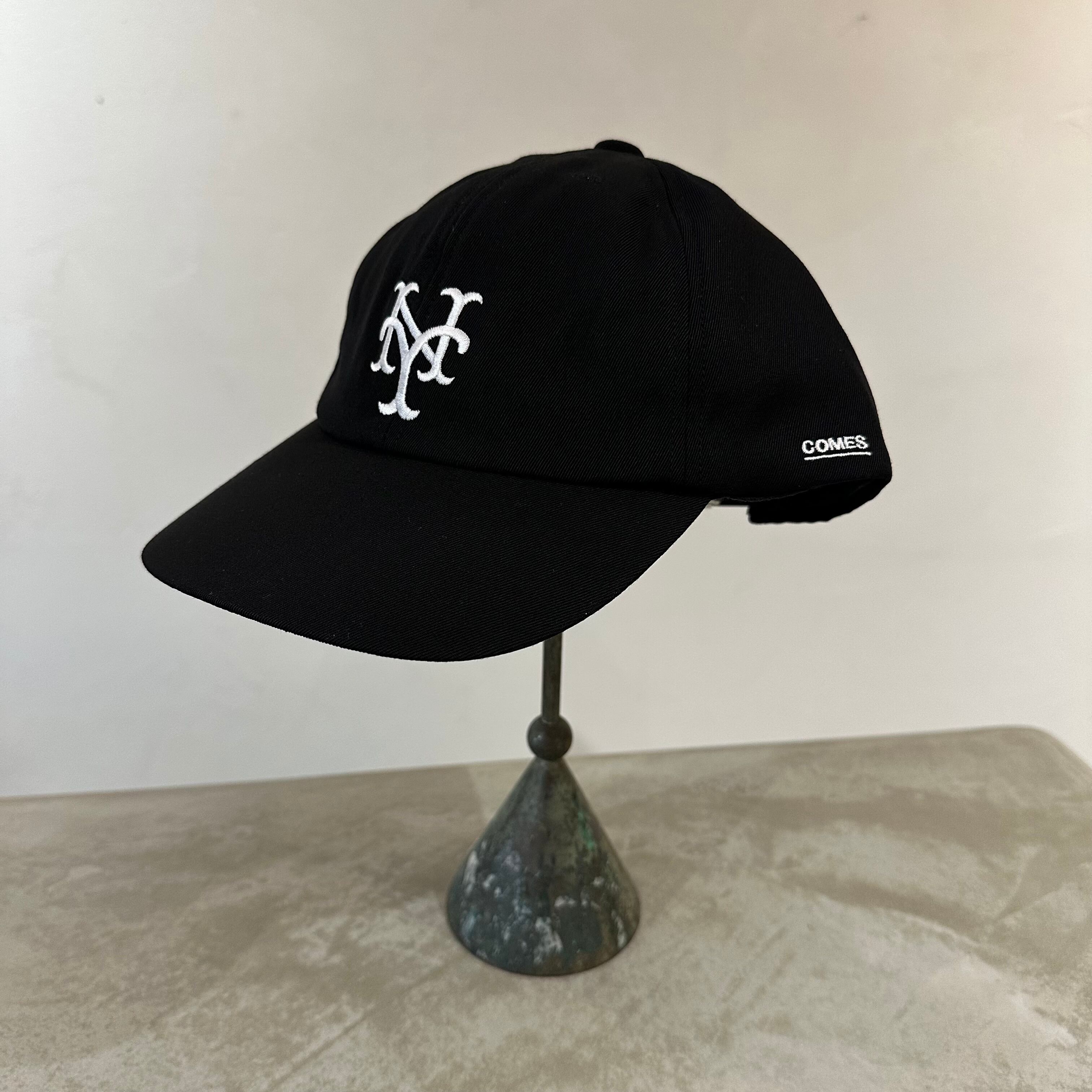 スタンダード型CAPのフロントに"NY"の刺繍が入り、サイドに"COMES"の刺繍が入ります。つばの長さ約7.4cm。