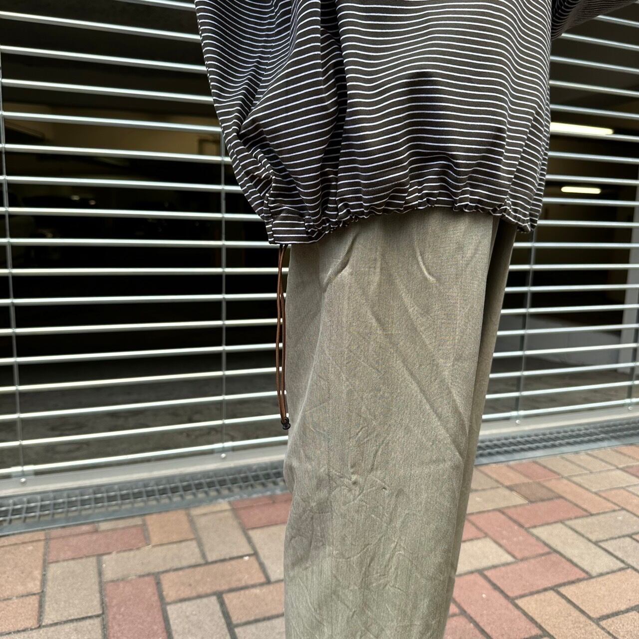 裾スピンドルを絞ることによってシルエットの変化が楽しめるTシャツとなっております。