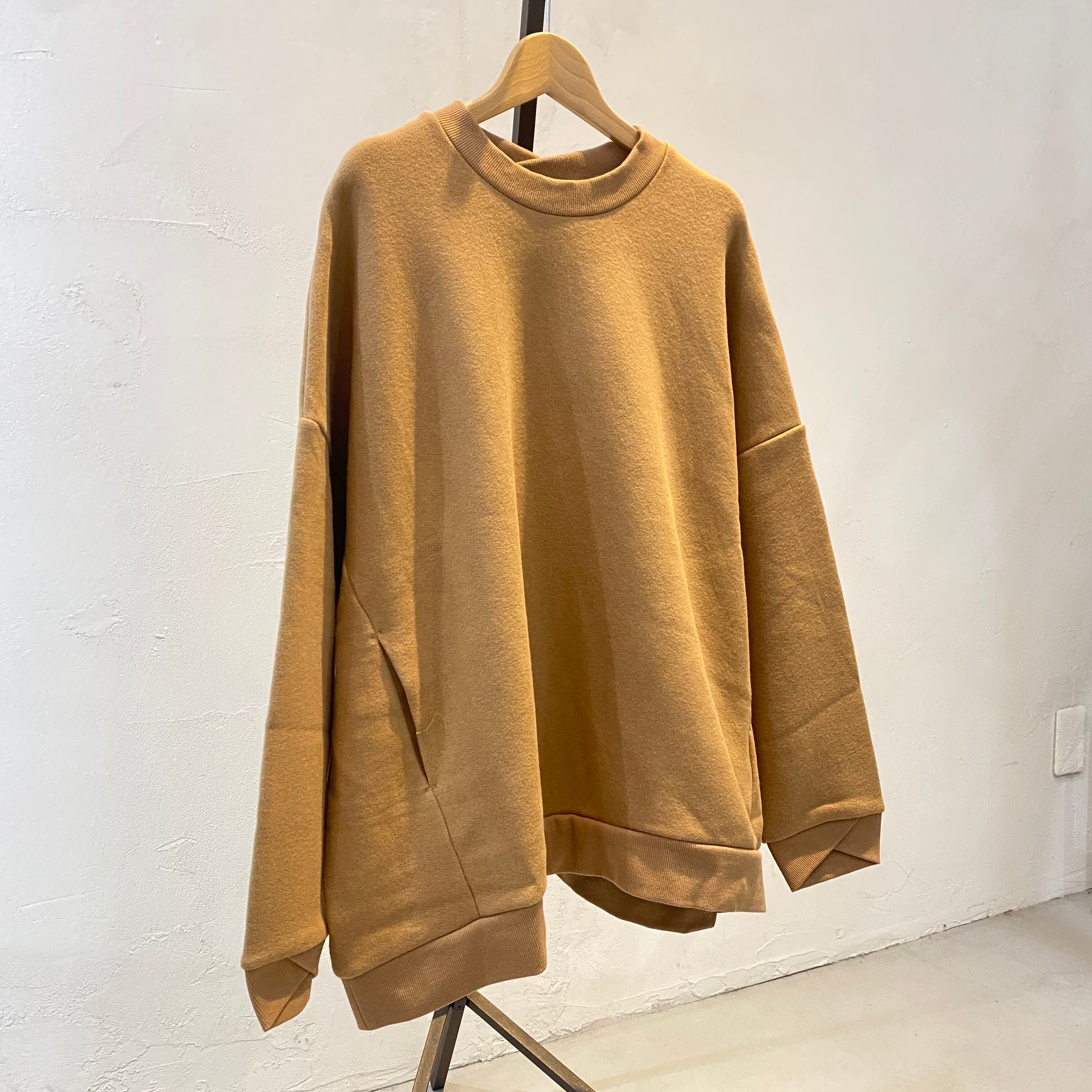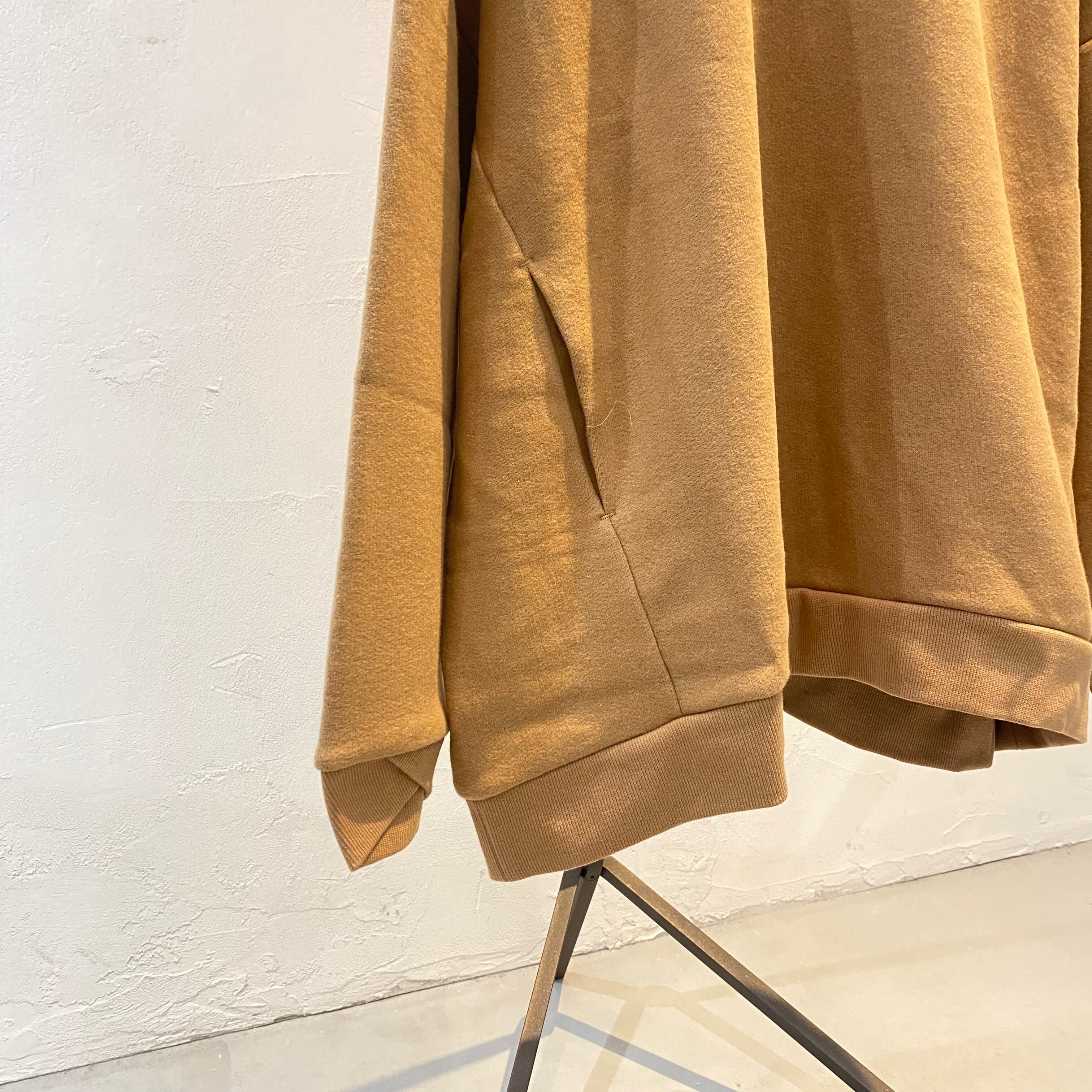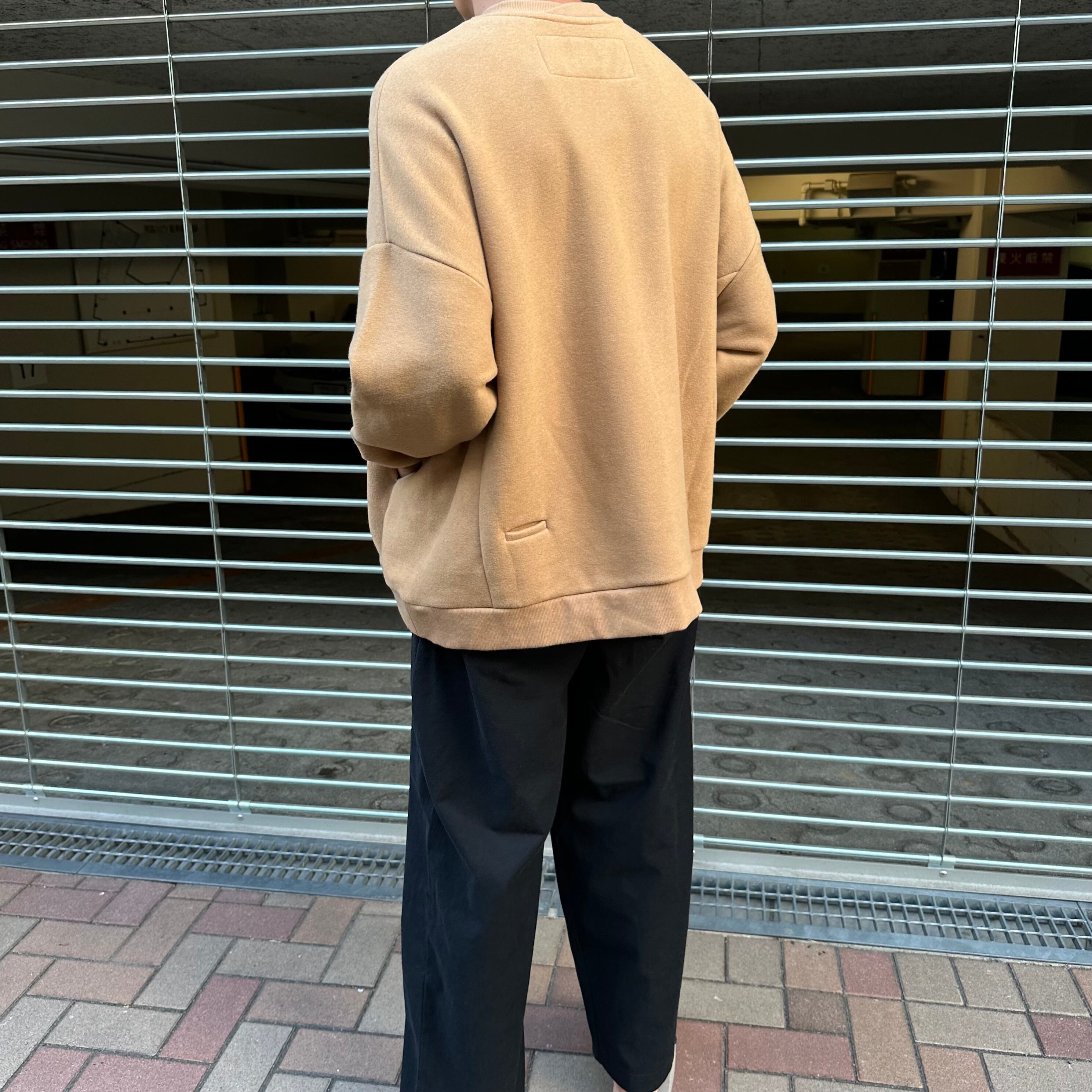 コットンリヨセル裏毛の両面起毛素材を用いて防寒性を引き上げたスウェット生地で仕上げたトップス。