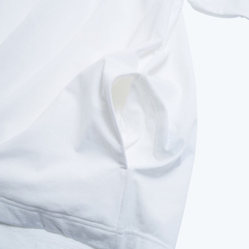 ネックと袖リブは端が⾒えるように外付けの設計。