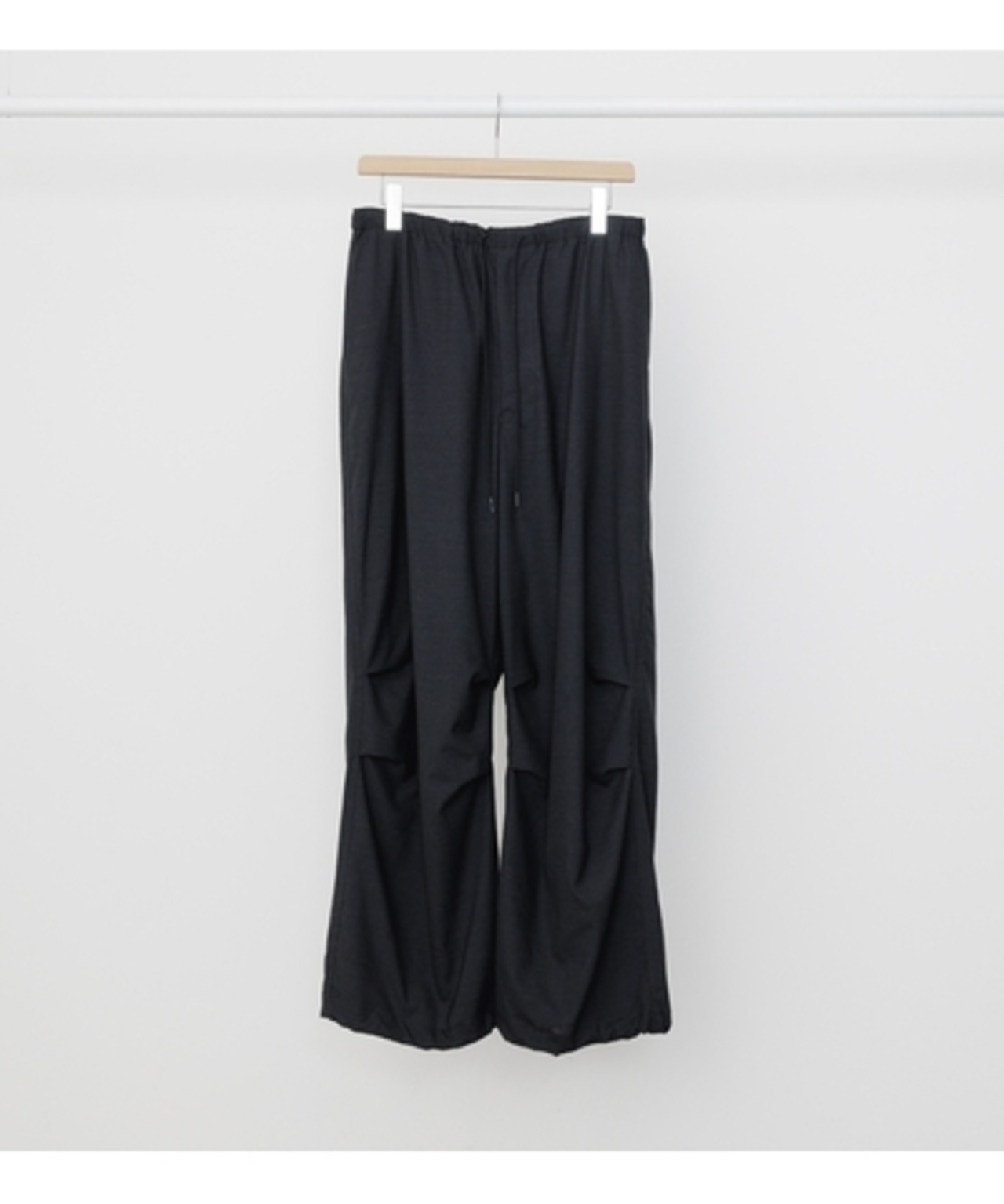 コクーンシルエットのイージーパンツをベースに、膝にタックを入れることでミリタリーパンツのような雰囲気に。