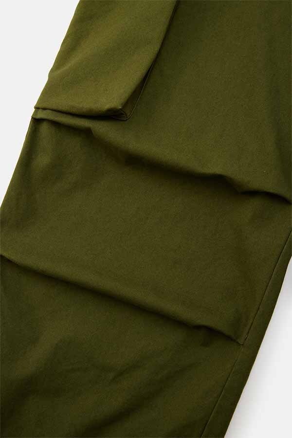 ワイドストレートで、裾スピンドルを調節することで足元に溜まるようなシルエットになっています。