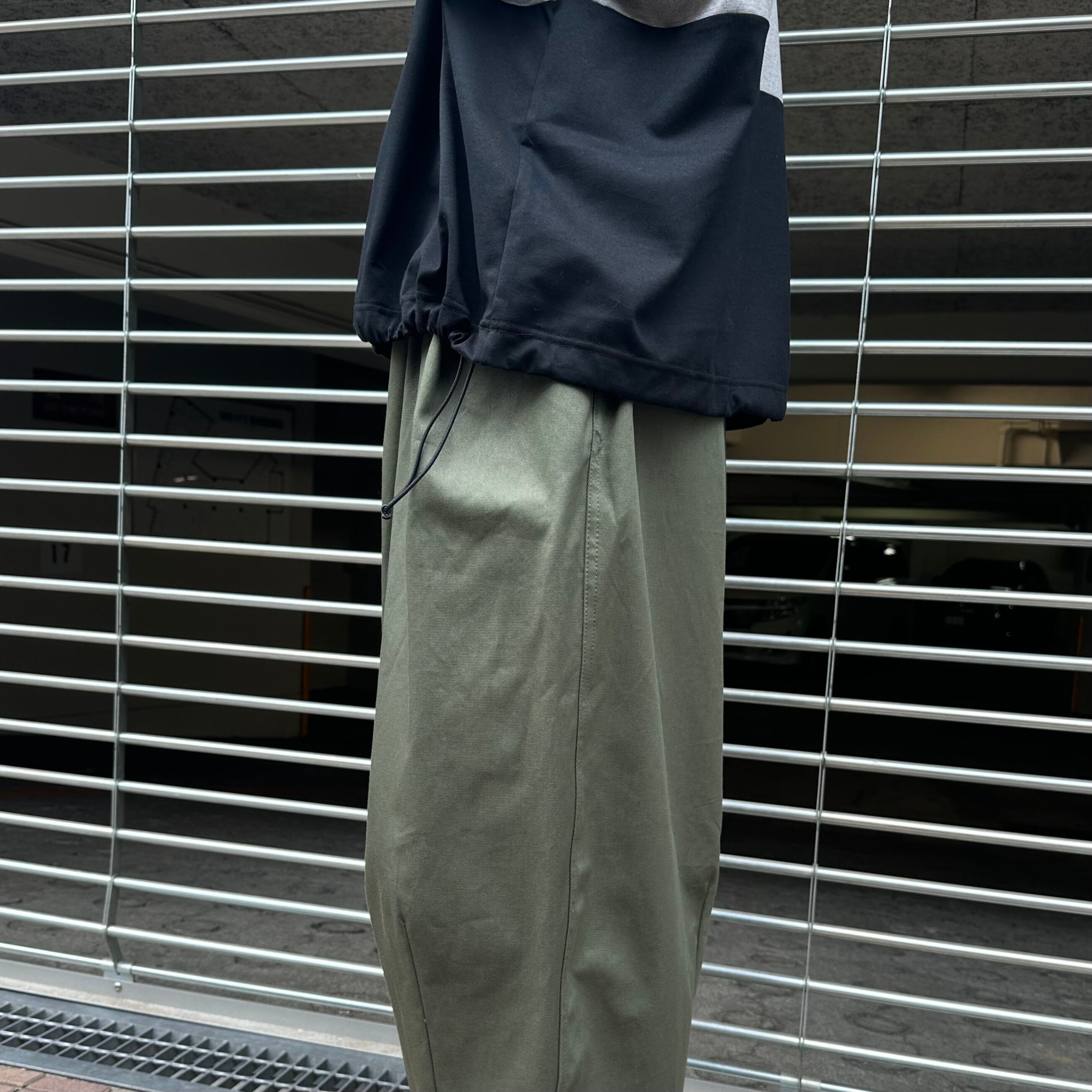 裾スピンドルを絞ることによってシルエットの変化が楽しめるTシャツとなっております。