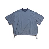 裾スピンドルを絞ることによってシルエットの変化が楽しめるTシャツとなっております。