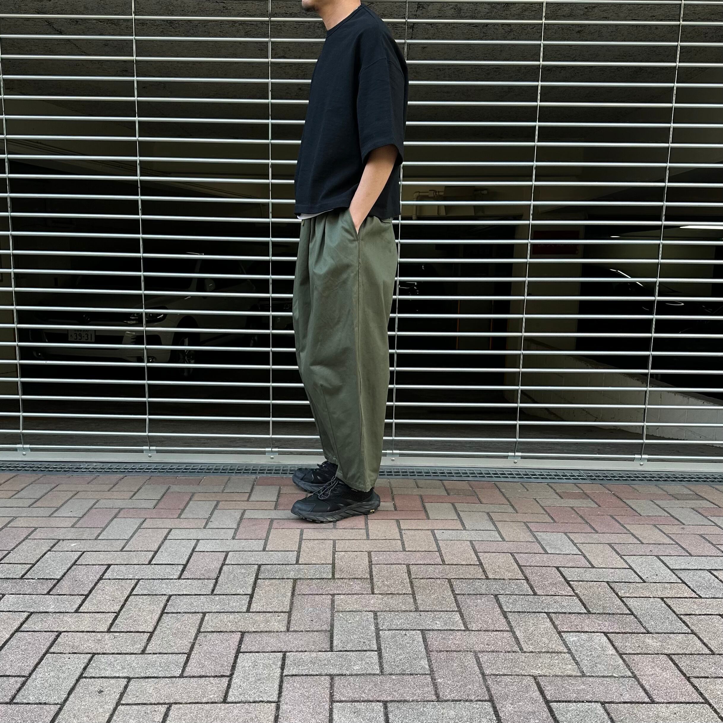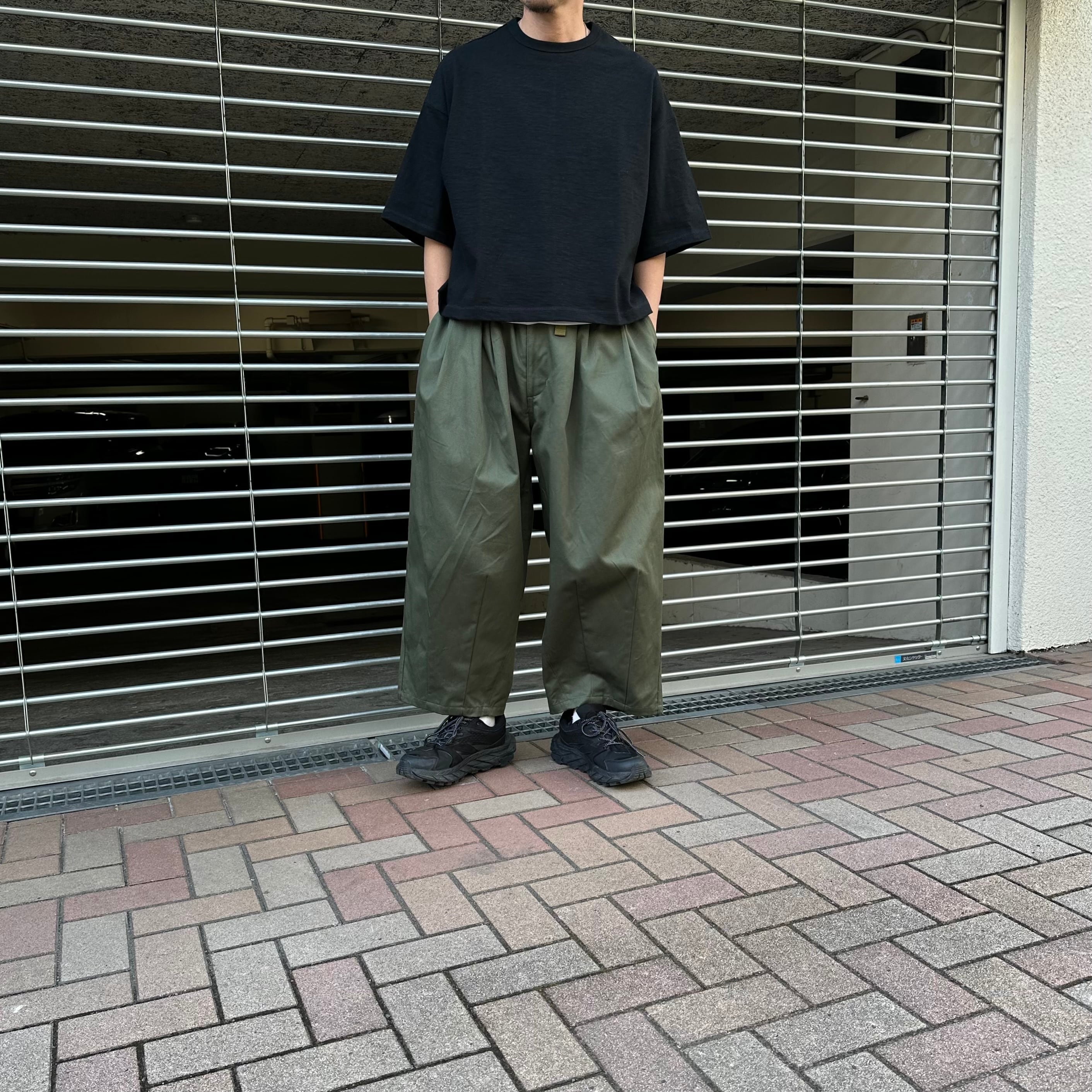 ウエストにタックが入り、ボリューム感を演出、ダーツの入った裾に向けて膝下からテーパードされており、バランスの良い丈感でカットしてありますので、ボリュームがありながら、スッキリとした印象です。