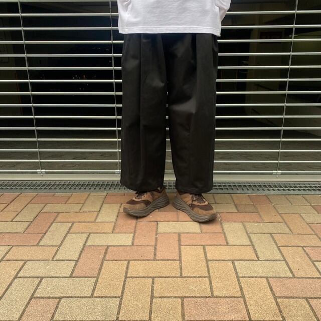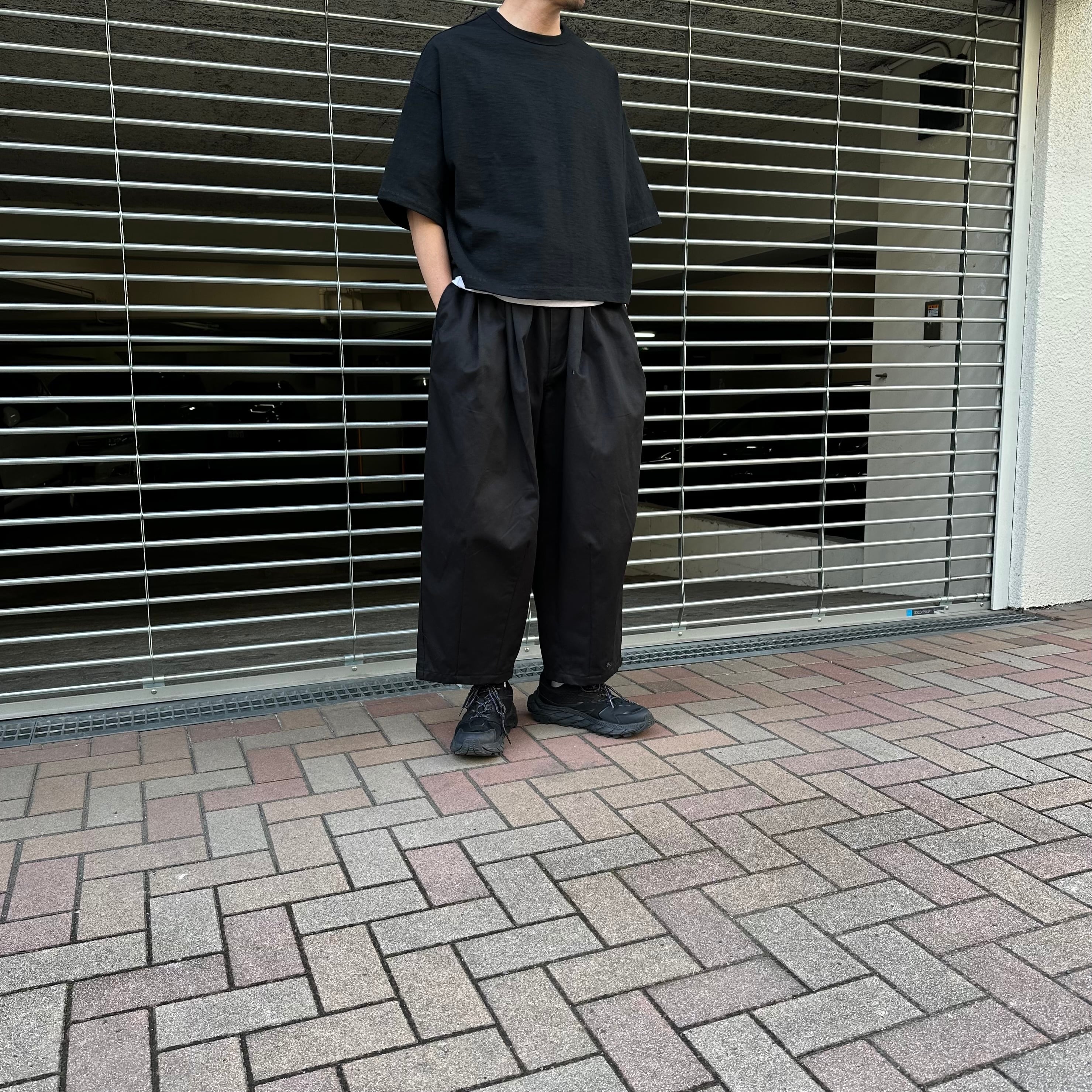 ウエストにタックが入り、ボリューム感を演出、ダーツの入った裾に向けて膝下からテーパードされており、バランスの良い丈感でカットしてありますので、ボリュームがありながら、スッキリとした印象です。